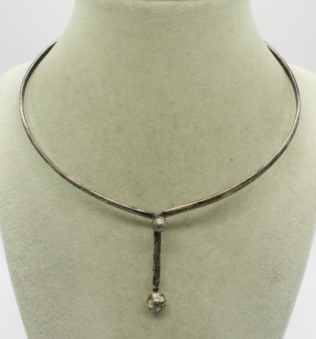 Front hook sterling choker necklace. Some tarnishing, easily cleaned. 15″ around. (15.1 dwt)