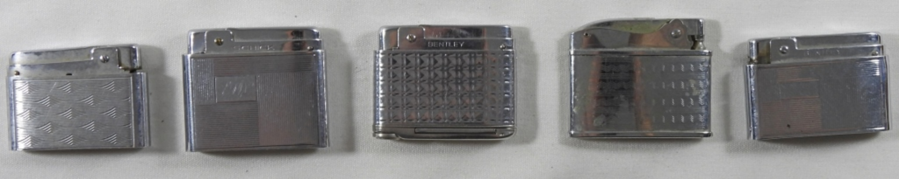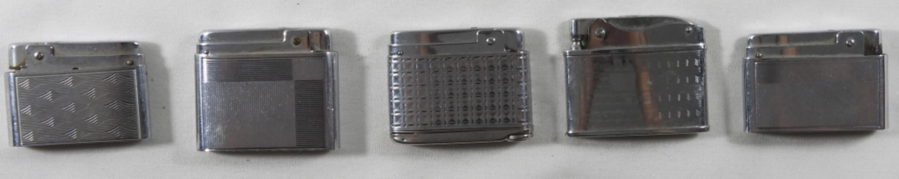 5 silver-tone lighters, all unique and different etchings on each. Untested as to working.
