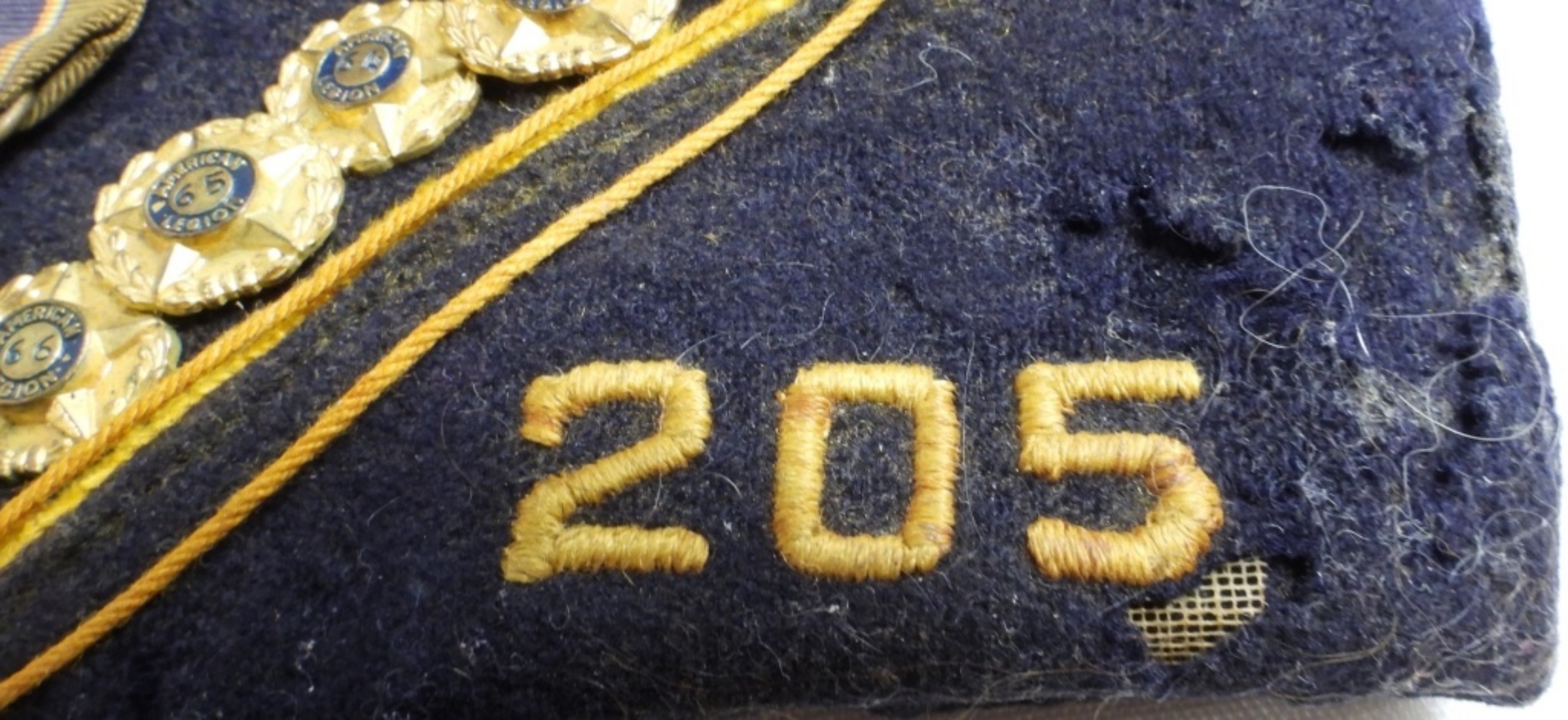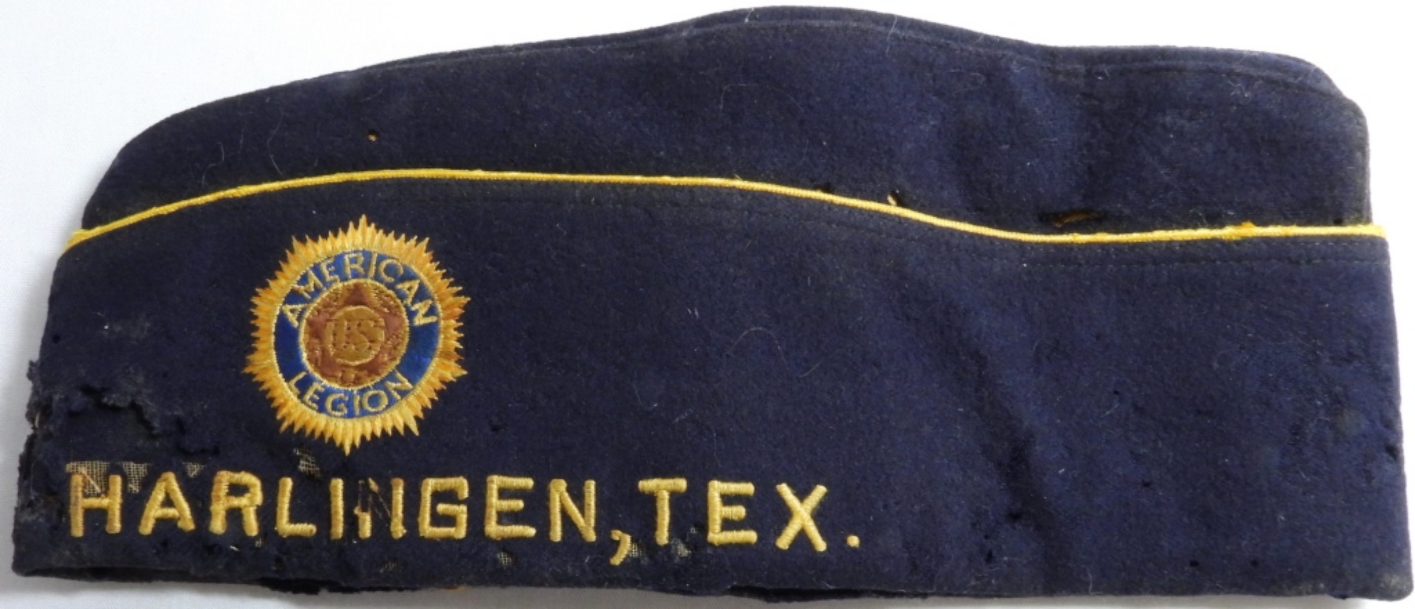 Very old and has holes. Harlingen, Tex 205. With 4 patches and 19 pins from 1948 to 1964