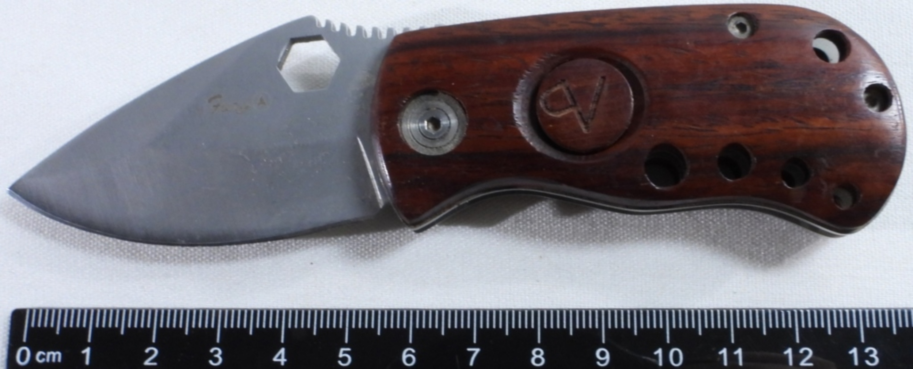 11050 China. Cherry colored wood handle inscribed “Peaceful Valley Scout Ranch”