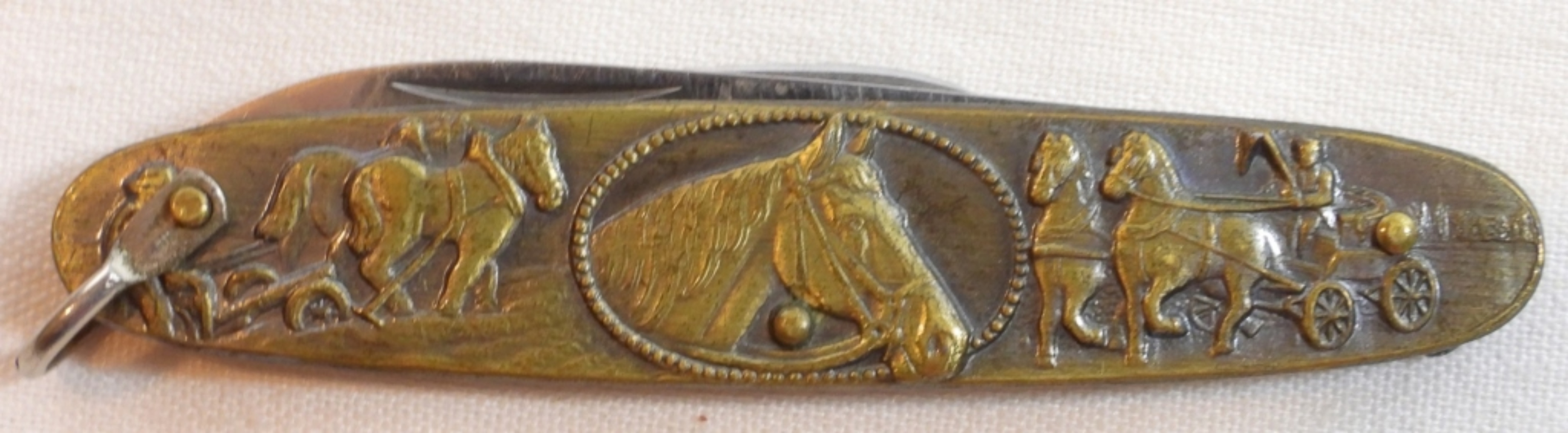 Solingen, Germany, double-bladed knife 1 1/4″, 2 1/4″, both sides featuring beautiful farm horses, handle length 3 1/4″