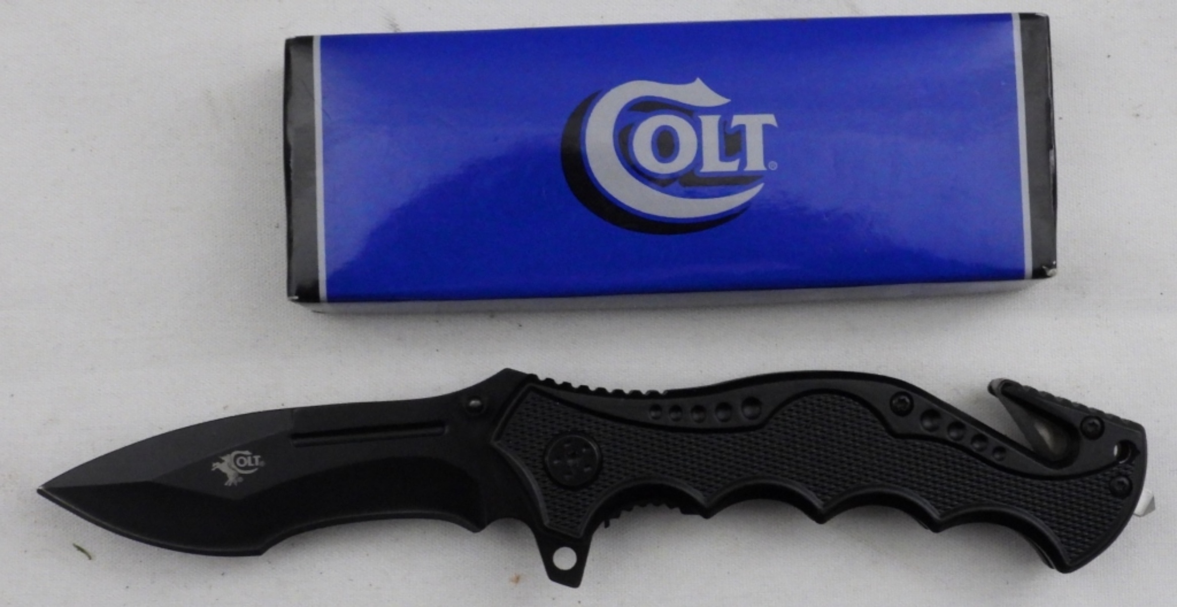 Like new in the box, it has a seatbelt cutter and window breaker.