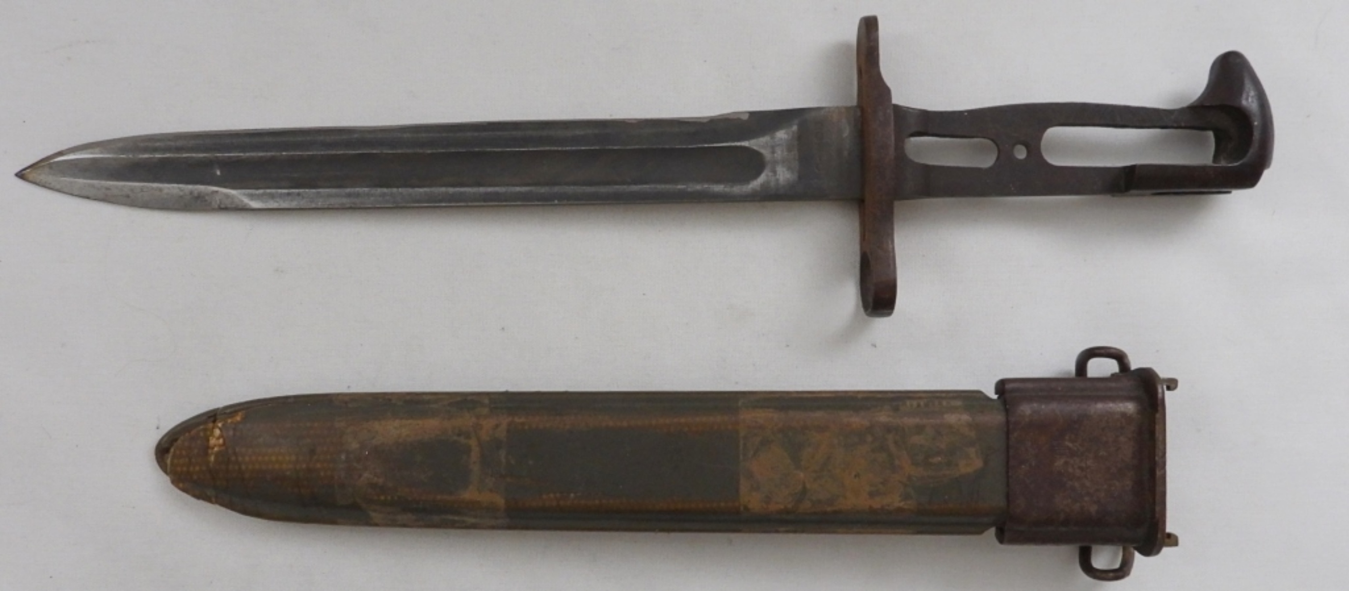 missing grip on handle, total length 14 1/2″, scabbard is worn