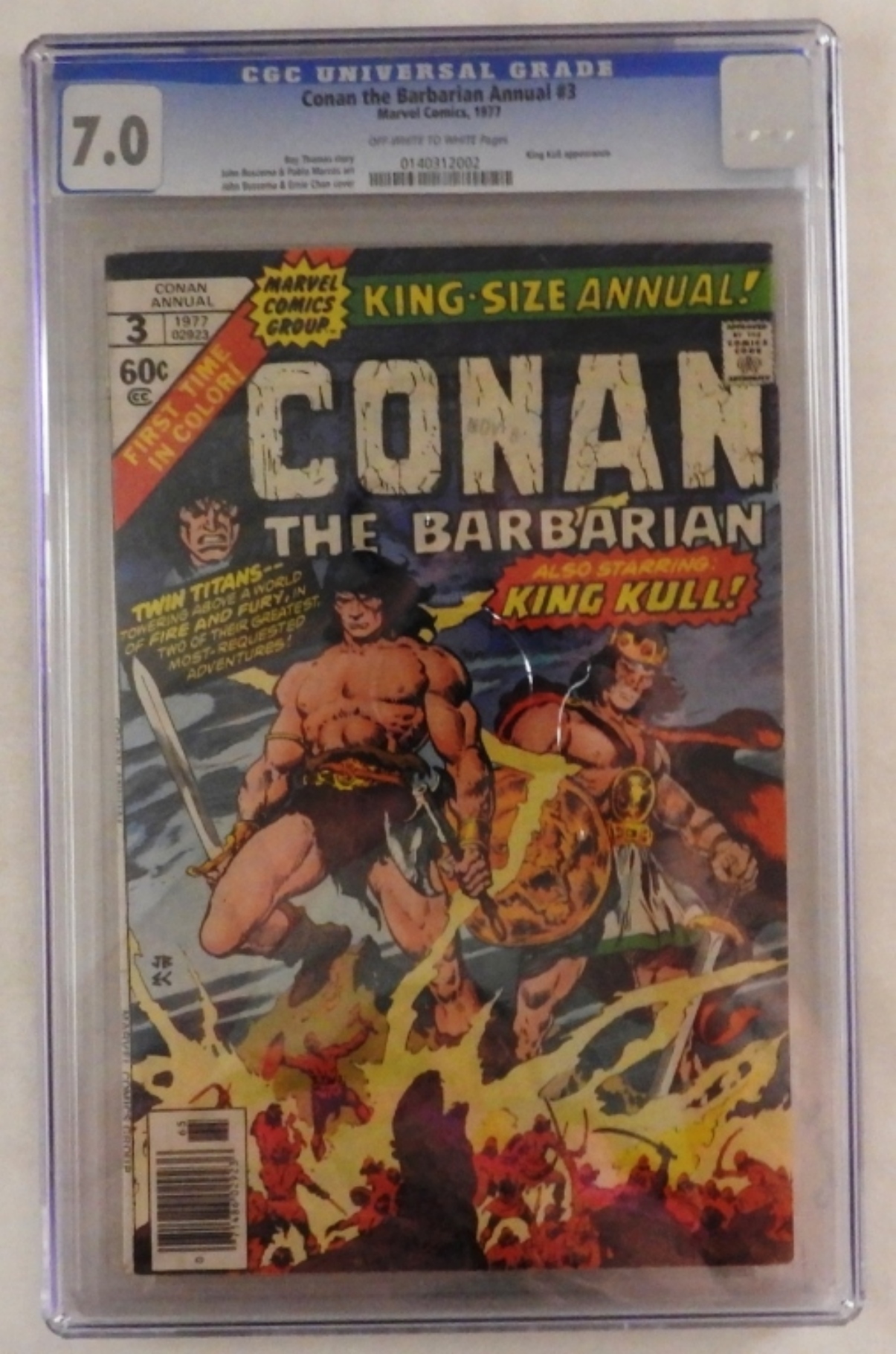 Marvel Comics, King-Size Annual!, Conan The Barbarian #3, 1977, off white to white pages, CGC 7.0