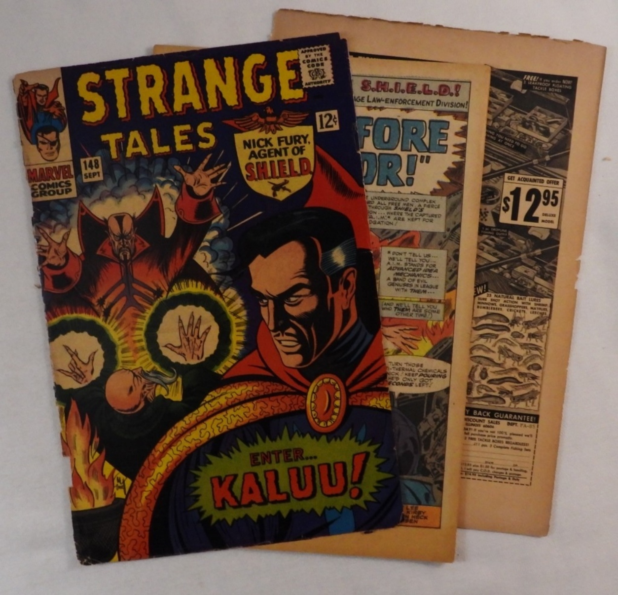 1960s, Strange Tales, #127, 130, 132, 133, 136, 145, 148, and 149, conditions vary, #127 ripped back, #148 cover is disconnected and in two pieces, #149 two pages have extra paper on the bottom corner