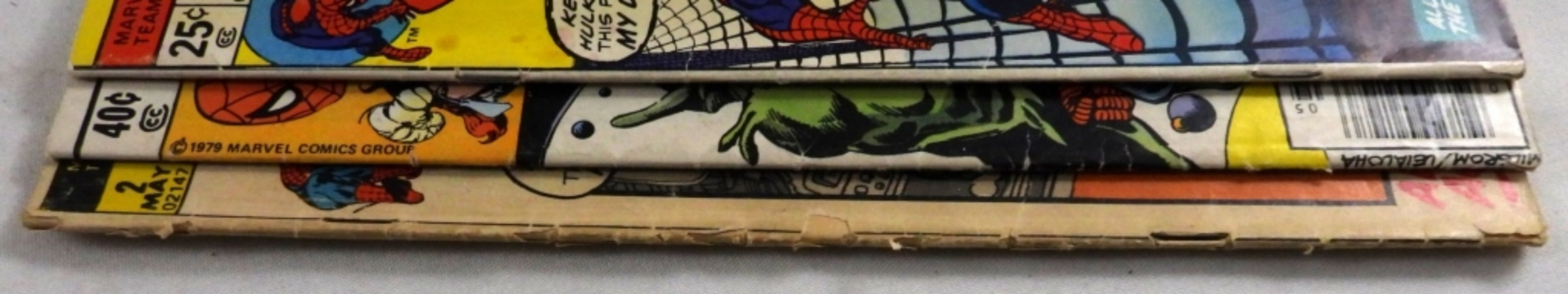 1) Spider-Man and the Human Torch #2. 2) Spider-Man and the Incredible Hulk #27 3) Spider-Man and Satana #81