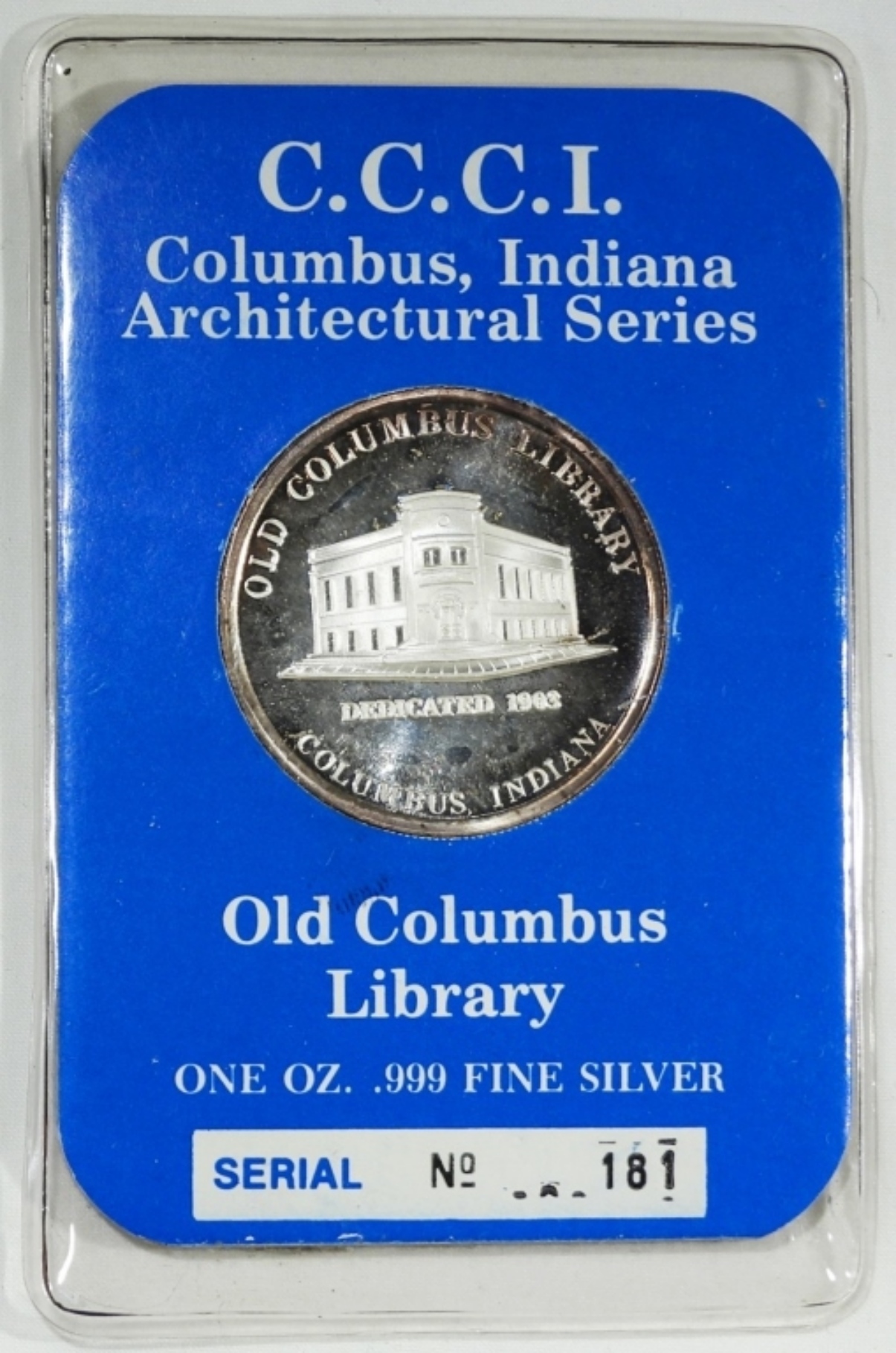 (.85 ozt) COIN & .999 SILVER 1oz OLD COLUMBUS LIBRARY COIN