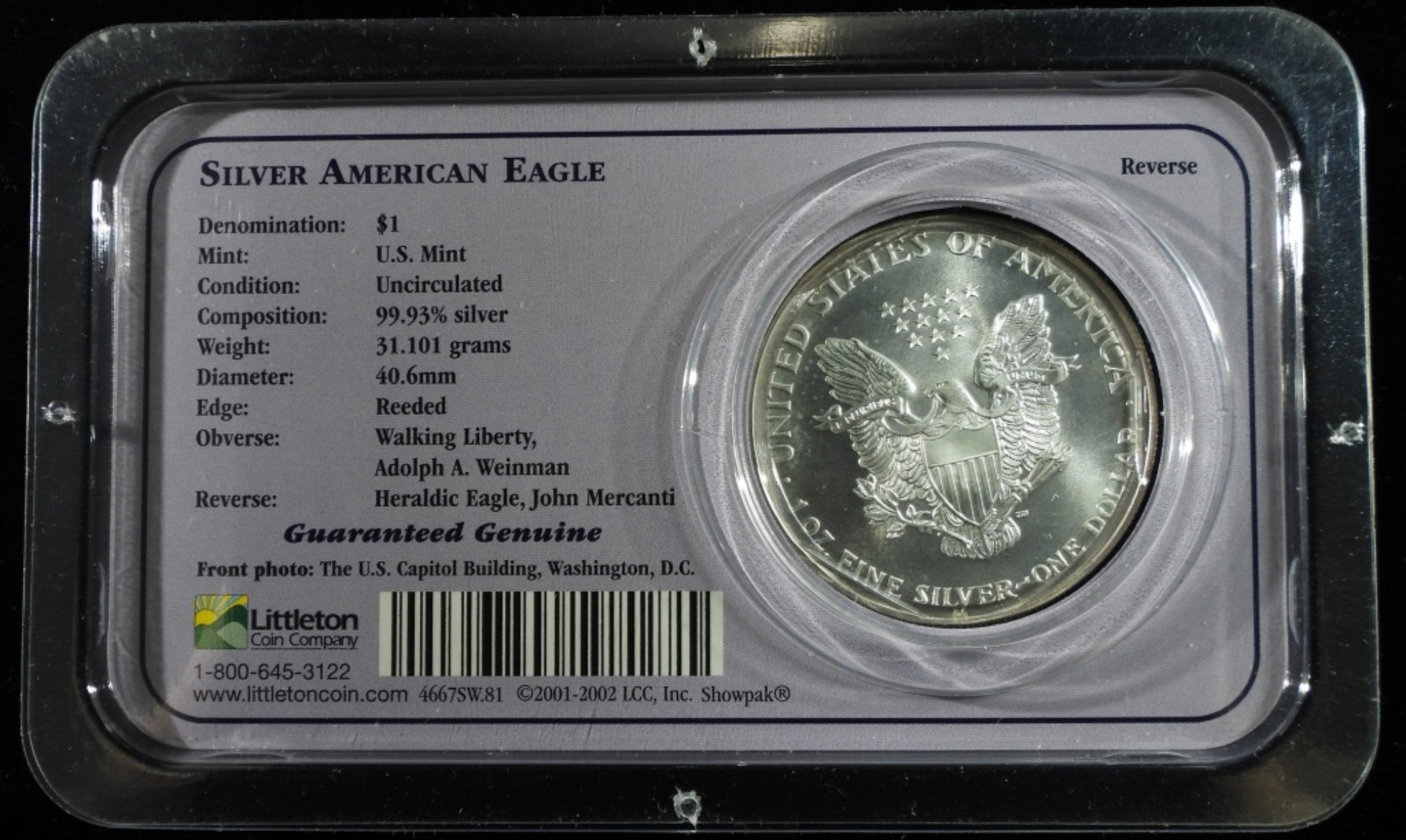 American Silver Eagle 1ozt .999 Pure Silver