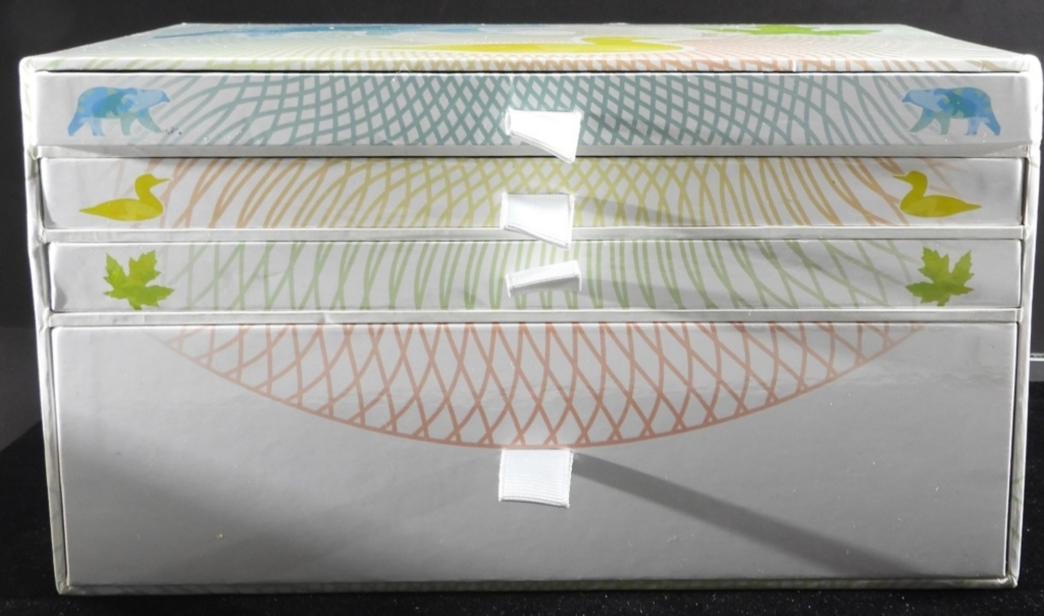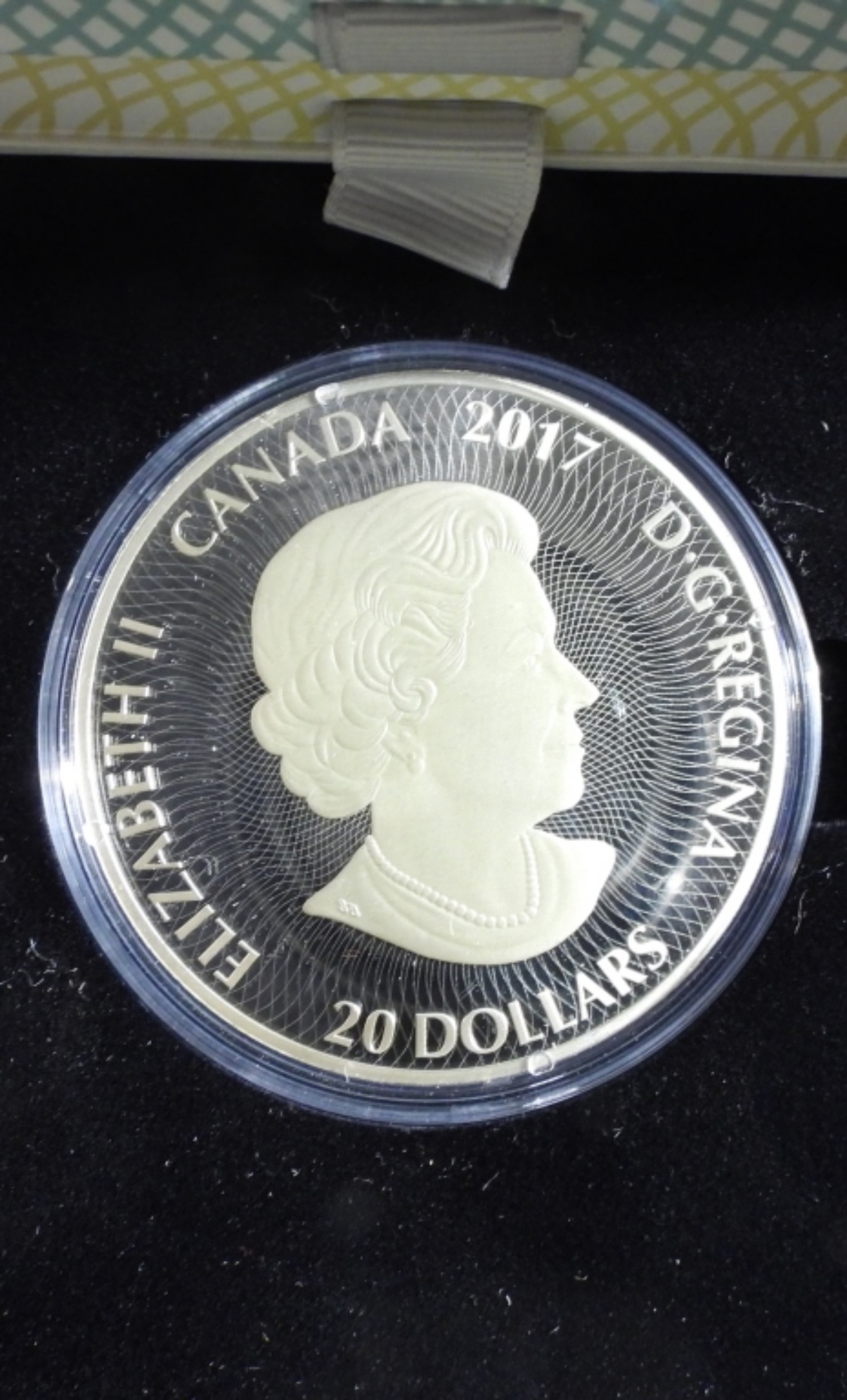 3 Silver Coins In Collectors Box With Kaleidoscope, Coins Are Bear, Loon, Maple Leaf.