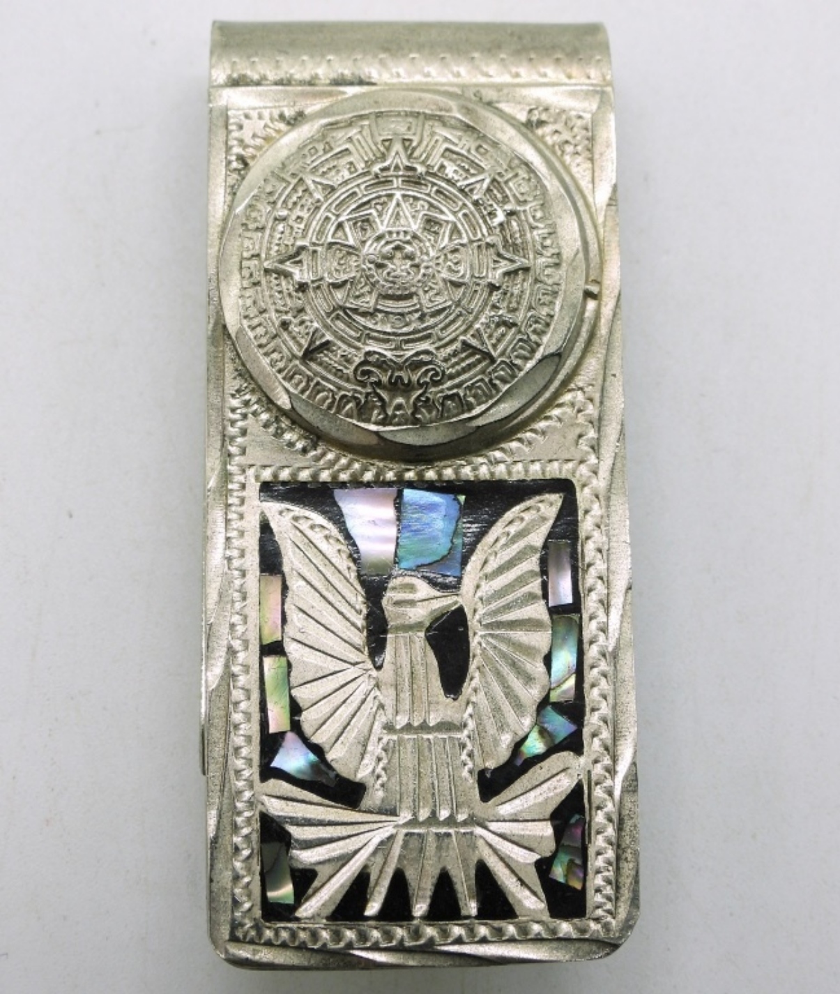 Vintage, Alpaca Mexico Money Clip with Abalone Inlay. 2.5″. (24.2 dwt)