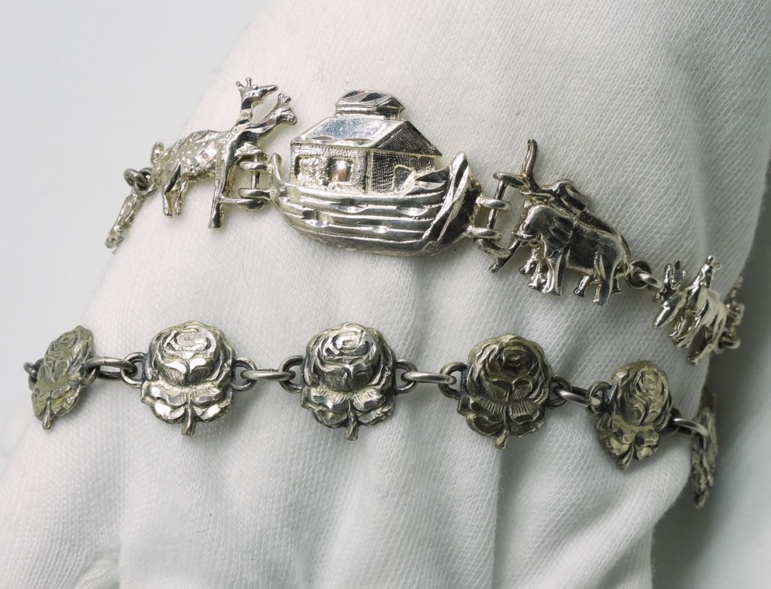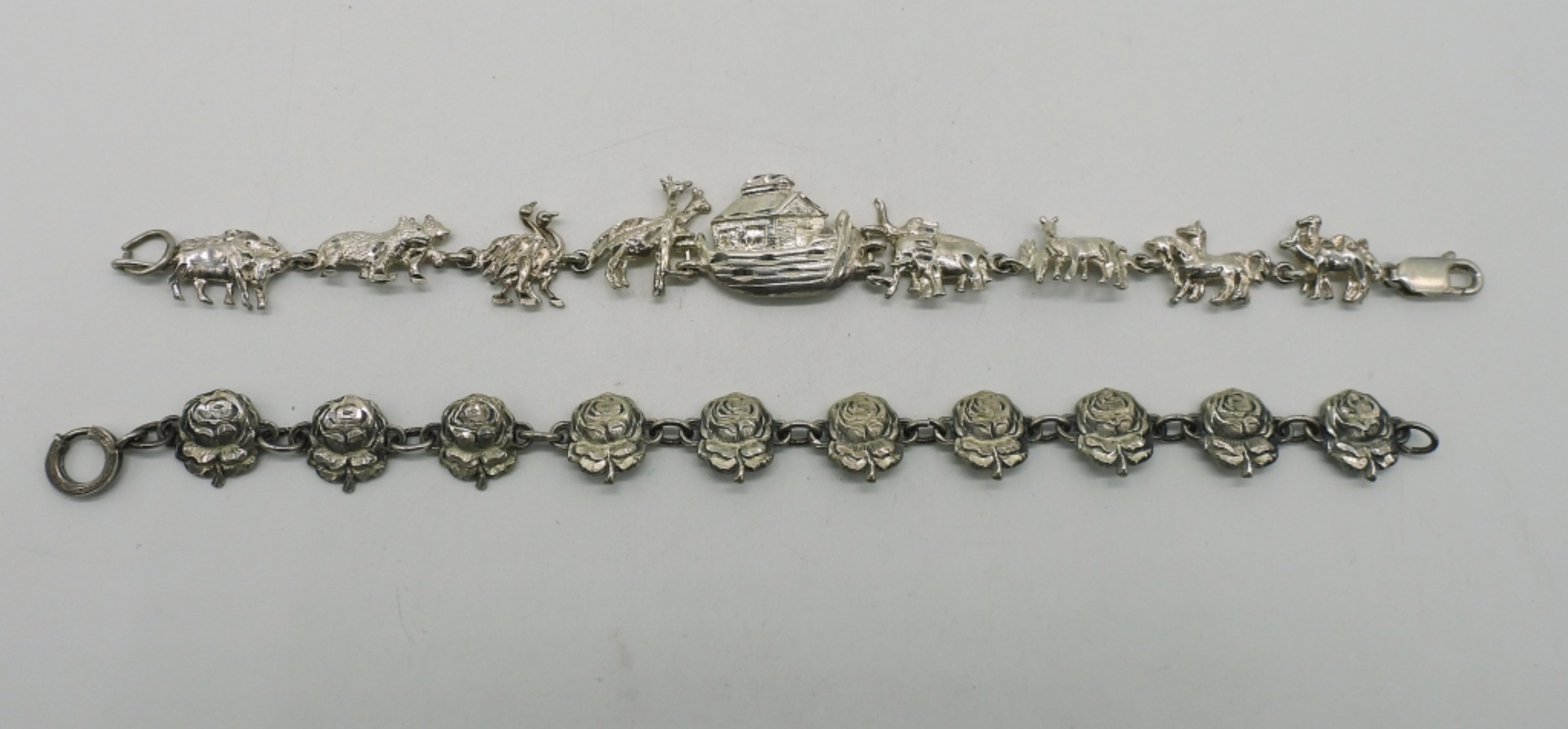 Two sterling bracelets, Ark and Roses. 7 – 7.5″. (16.2 dwt)