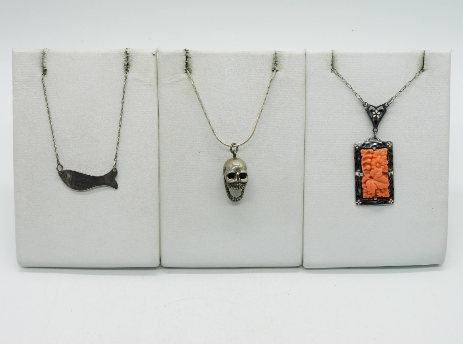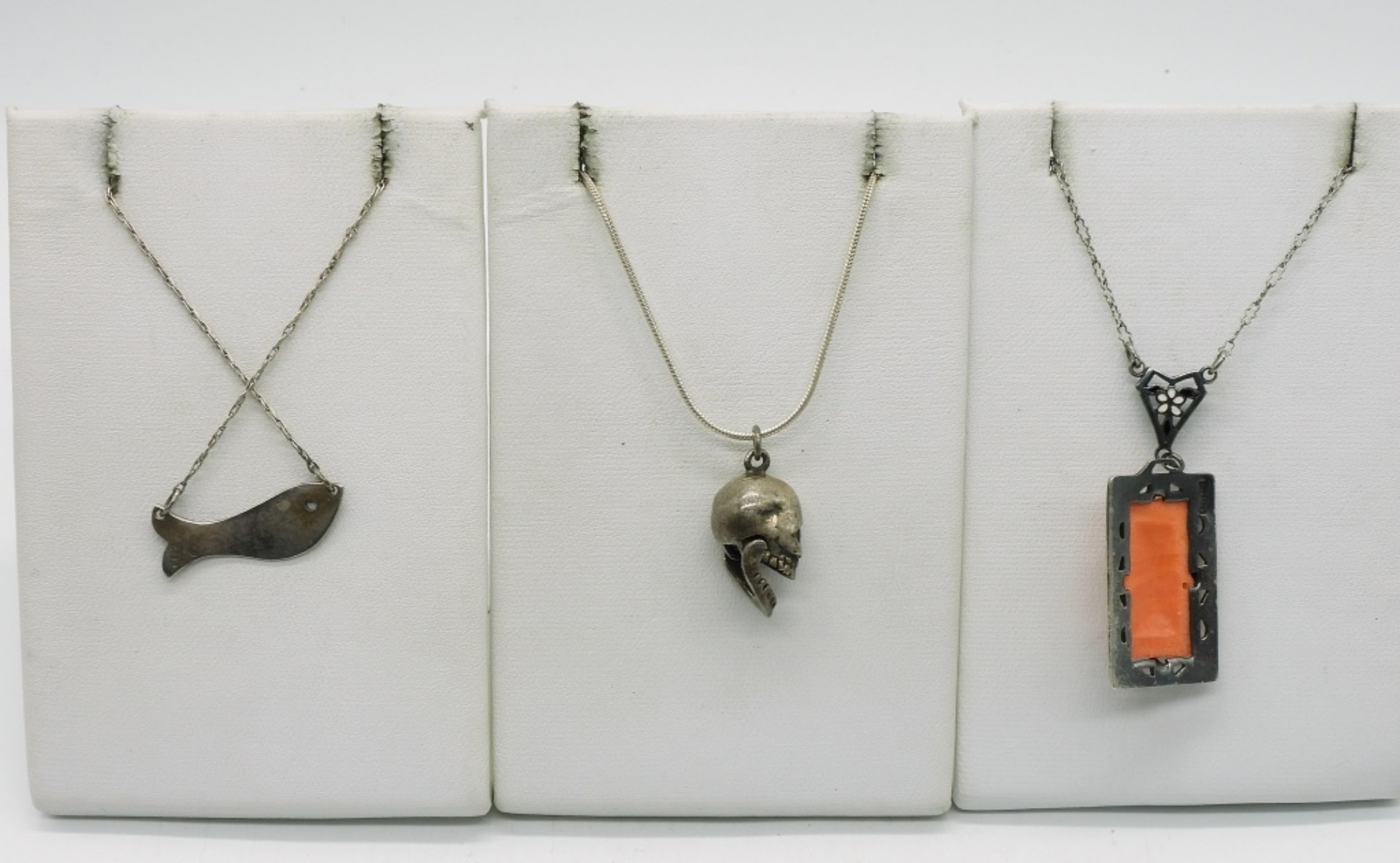 Three sterling fashion necklaces, 15″, 18″, 20″. (9 dwt)