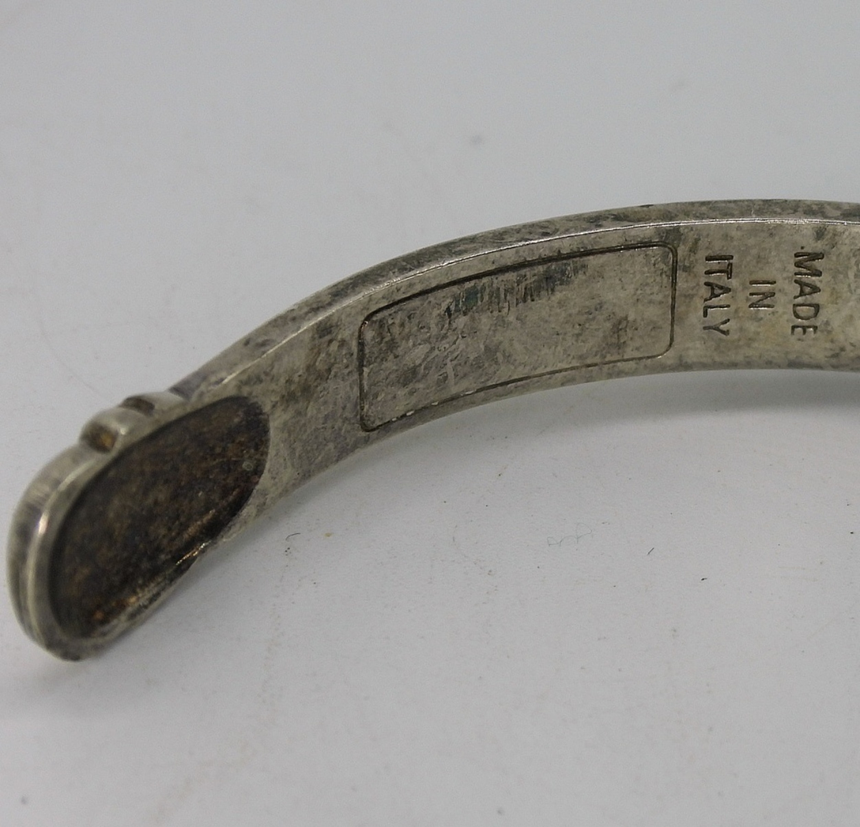 Sterling cuff bracelet, “until there’s a cure” engraved on the inside. Ribbon on the outside. XO sterling brooch, 3″. (22.5 dwt)
