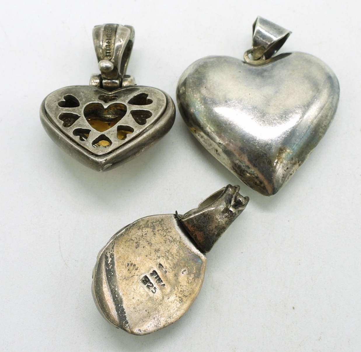 Three sterling heart pendants. 1.5″. (22.3 dwt)