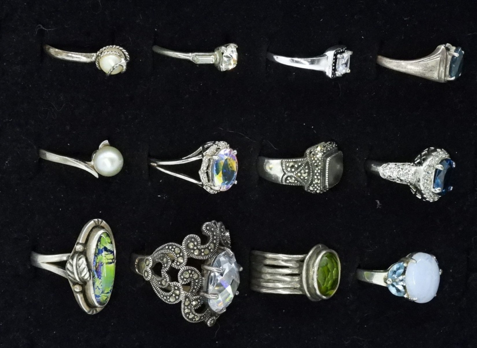 Twelve sterling gemstone rings, sizes 6-10 (35 dwt)