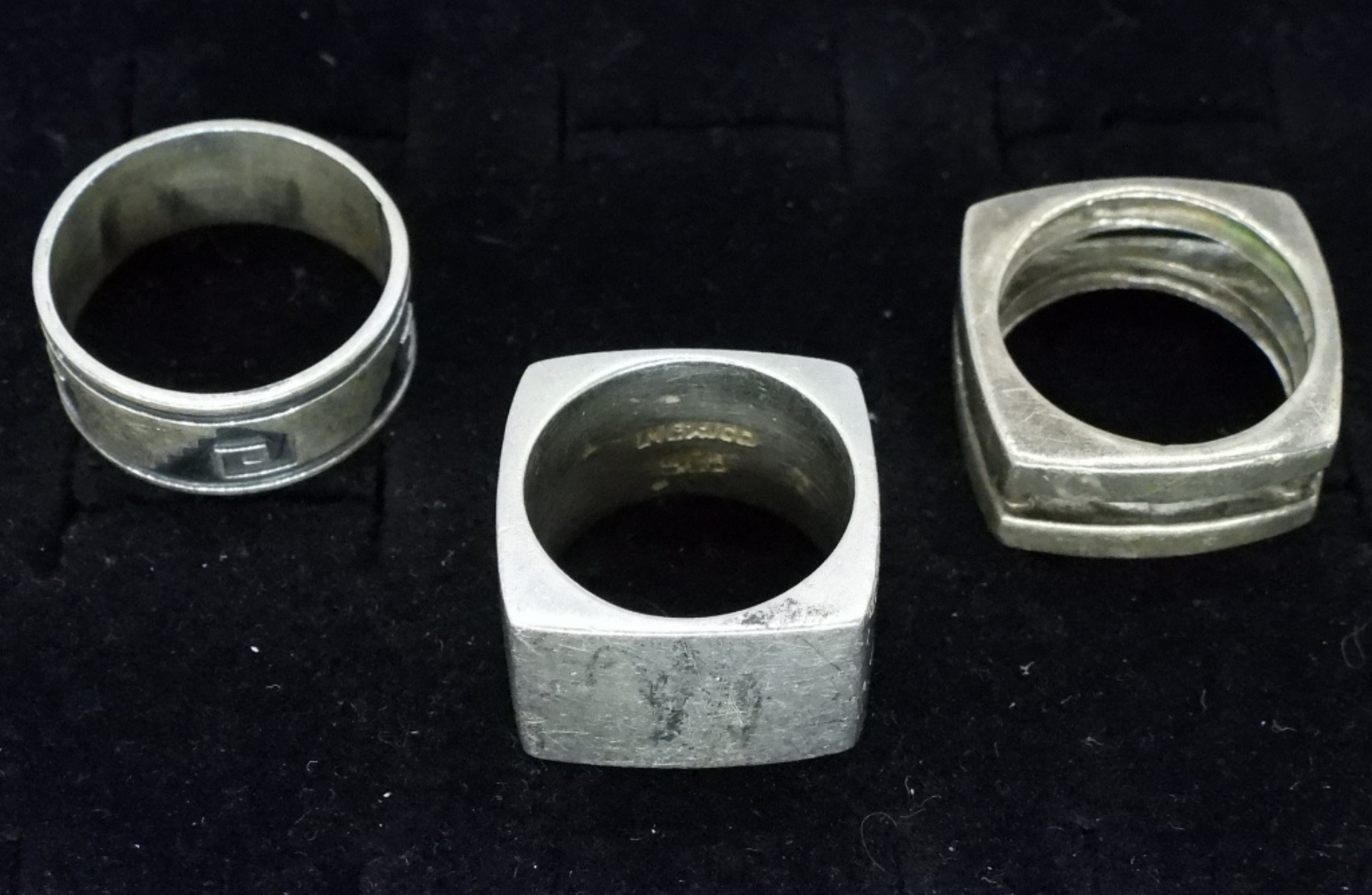 Three sterling rings, Mexico 925. Sizes 6, 7, 9. (19.4 dwt)