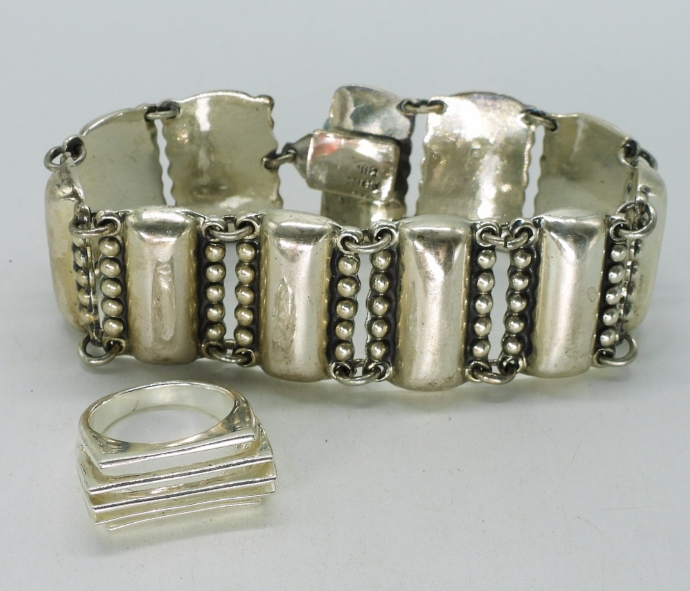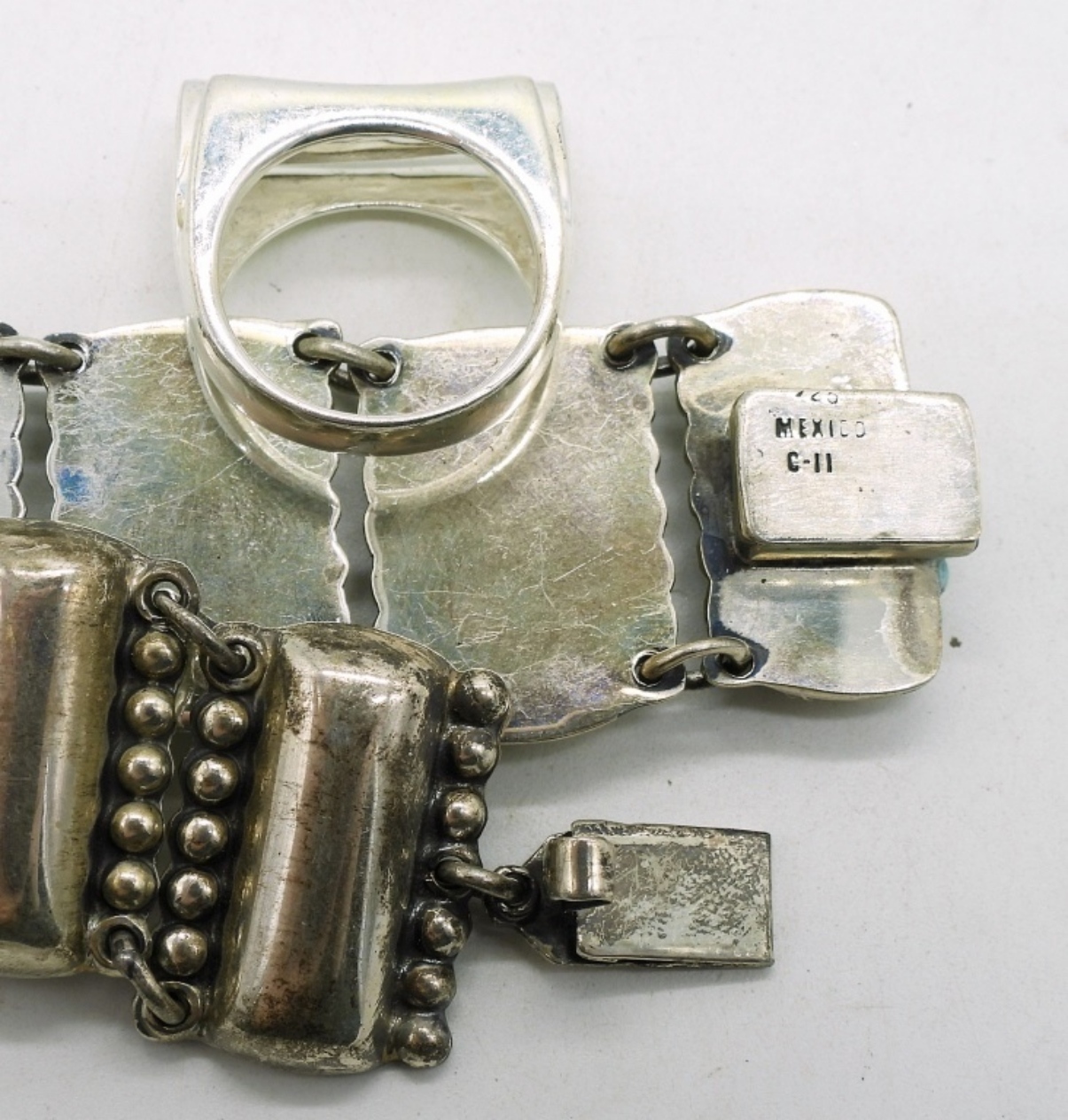 Mexico 925 C-11 bracelet, 8″. Ring size 7. (40 dwt)