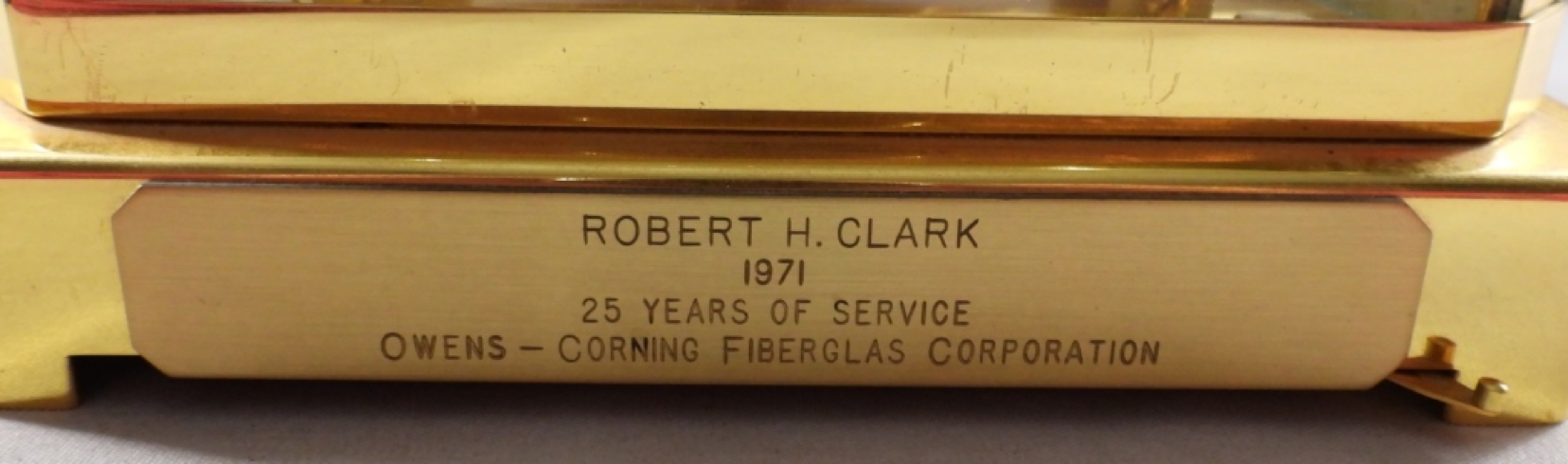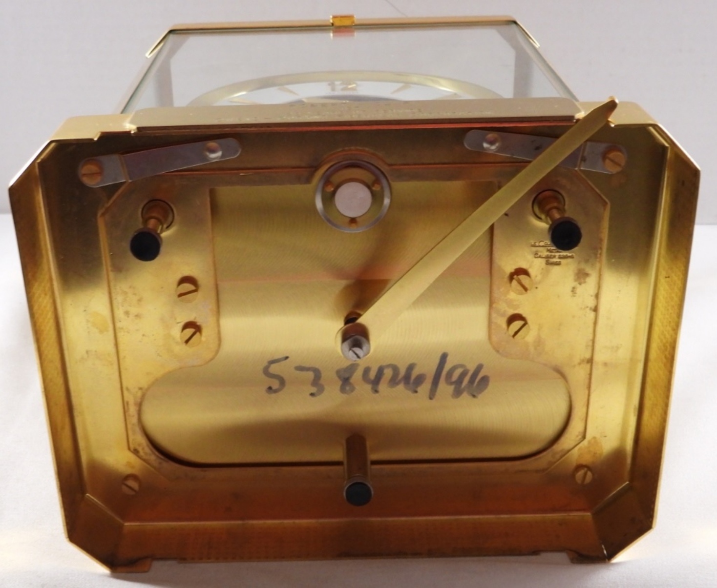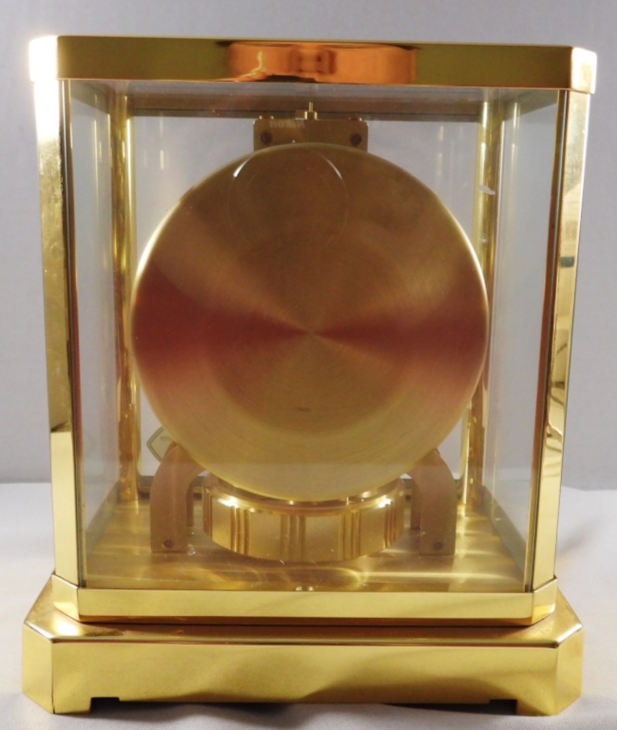 Atmos clock, gold-tone, cal. 519, serial #336248, late 1940s-1950s, 15 jewels, plate on front for years of service, Switzerland, unverified as to working