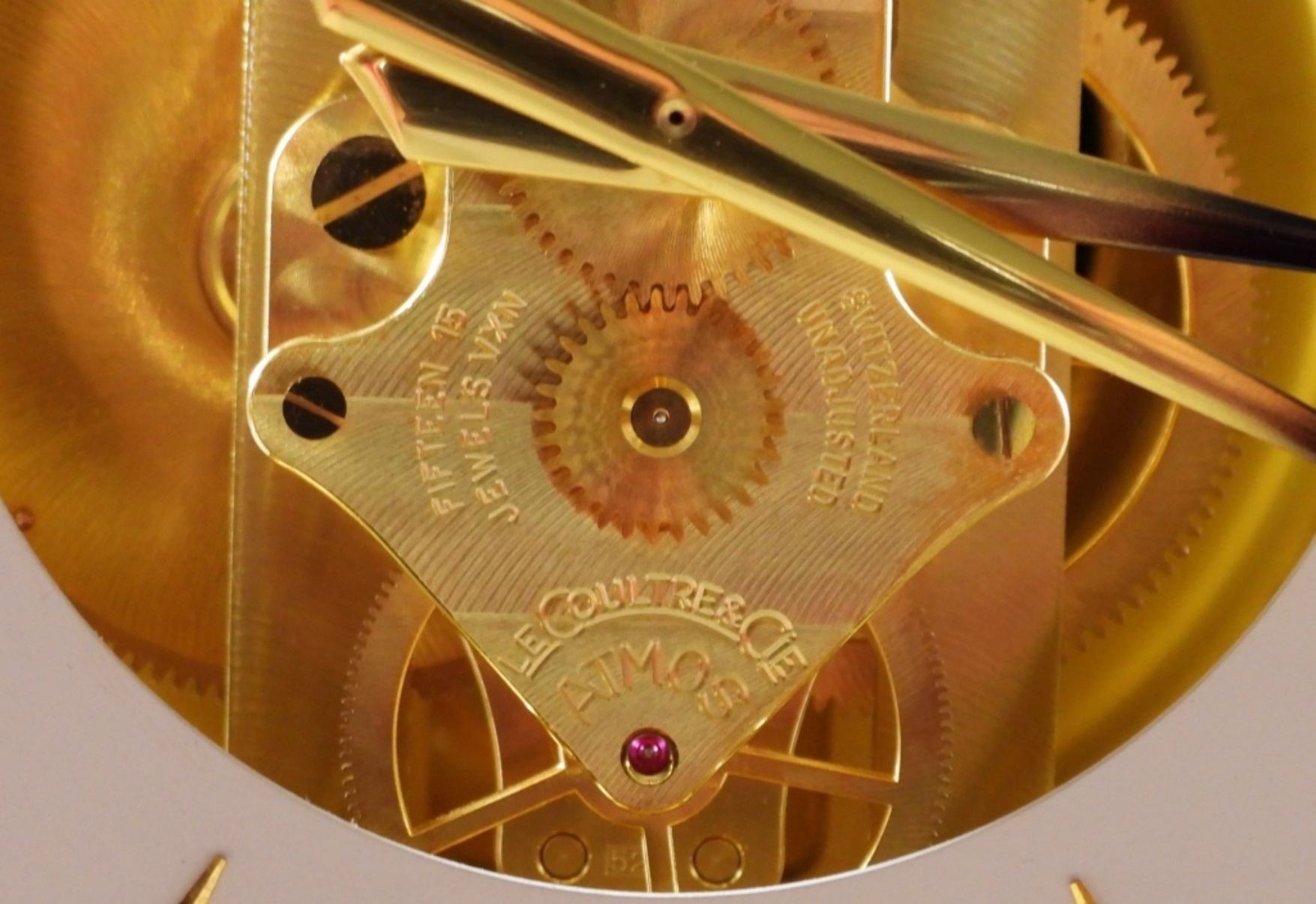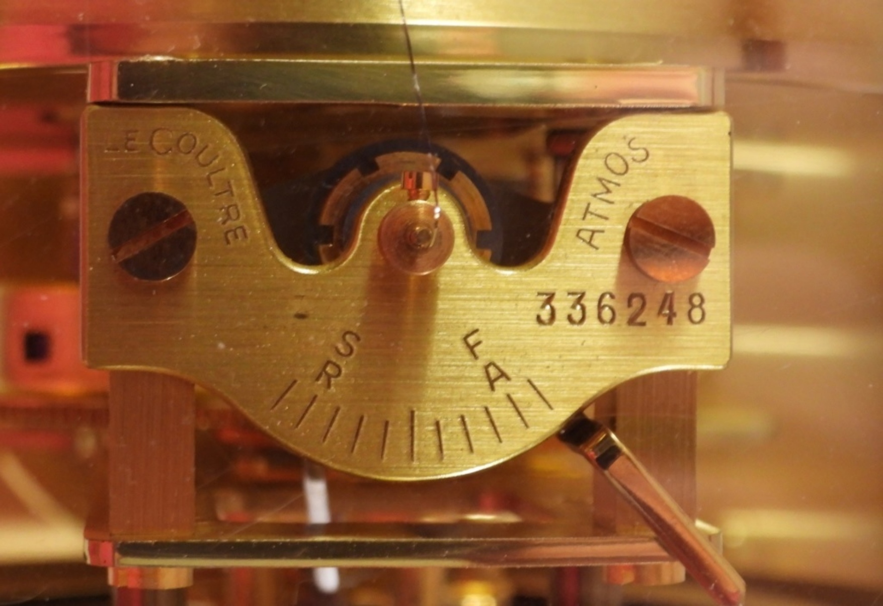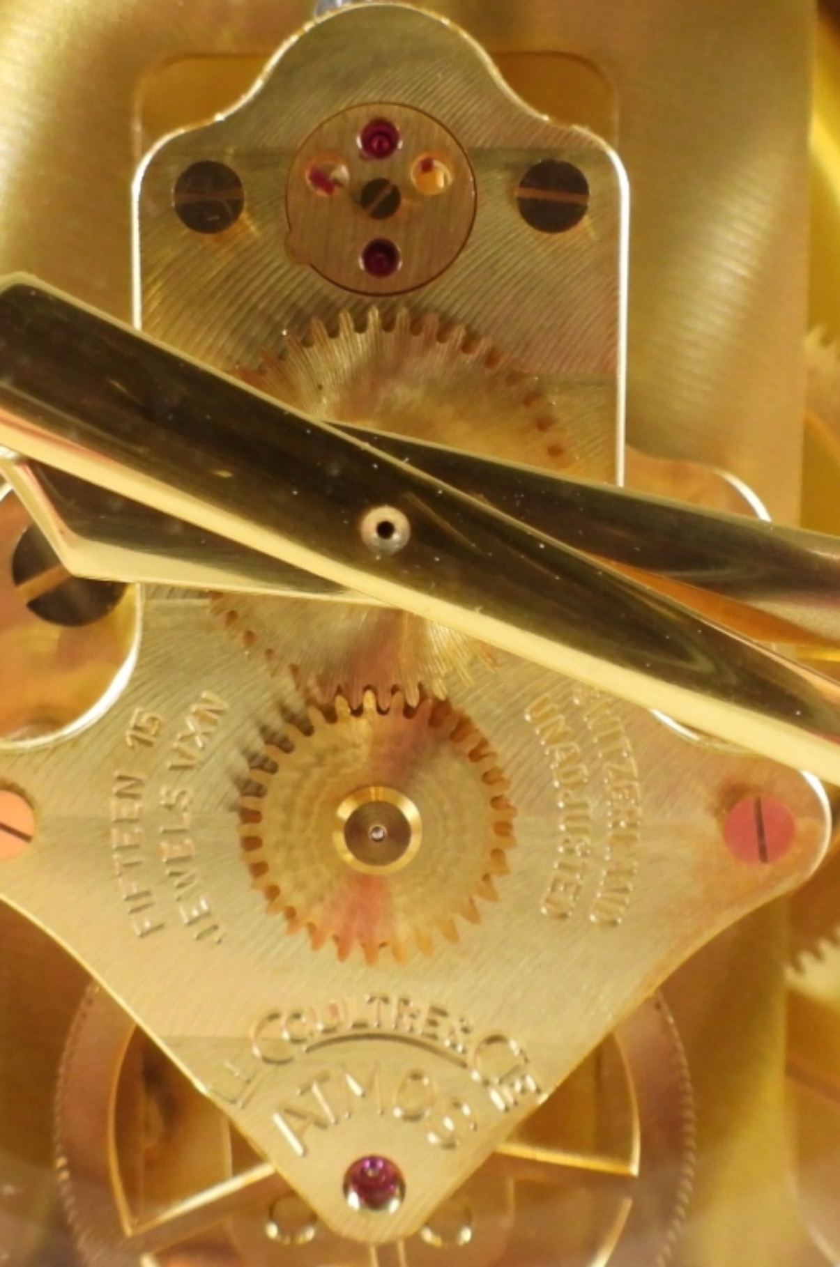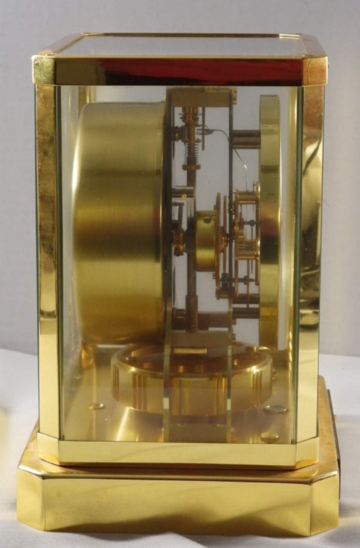 Atmos clock, gold-tone, cal. 519, serial #336248, late 1940s-1950s, 15 jewels, plate on front for years of service, Switzerland, unverified as to working