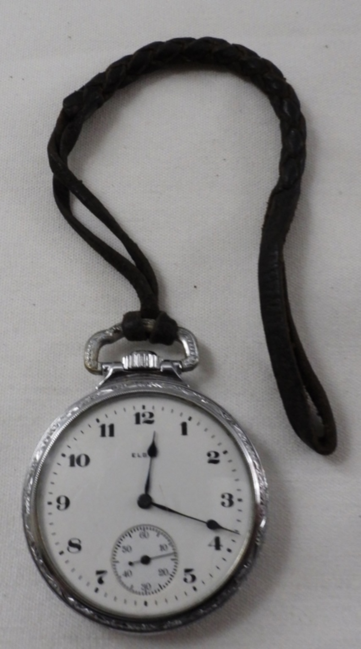 Watches are not verified, authenticated, or tested in running condition unless specified, 1920s Elgin, silver-tone, train on the back