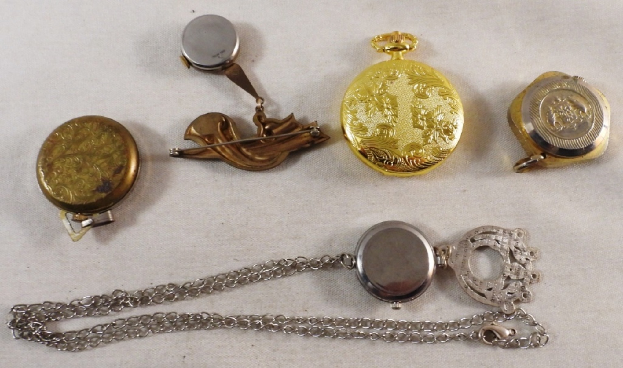 Watches are not verified, authenticated, or tested in running condition unless specified, different brands, one is a brooch