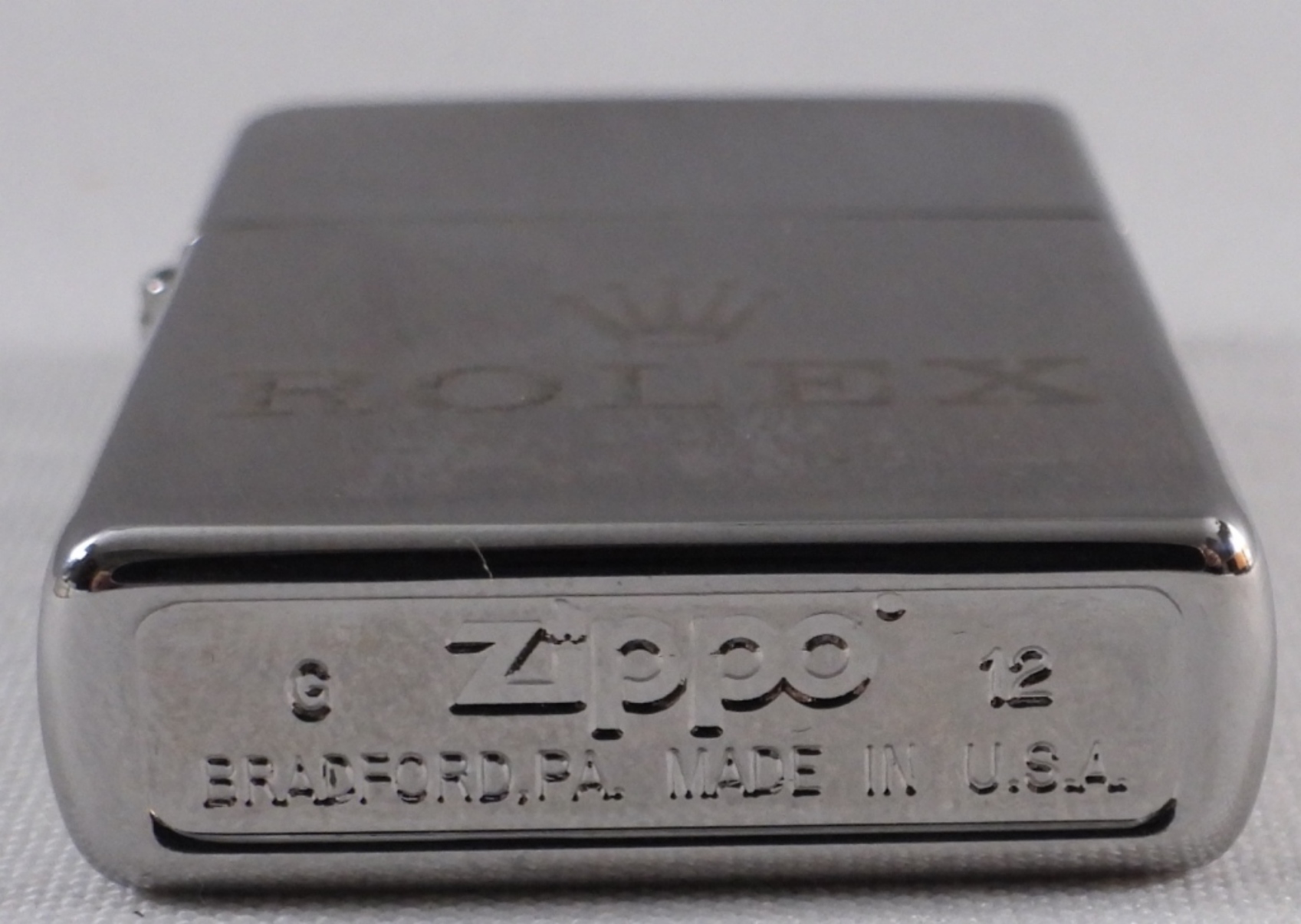 In a box, 2012. Etched Rolex logo on the front.