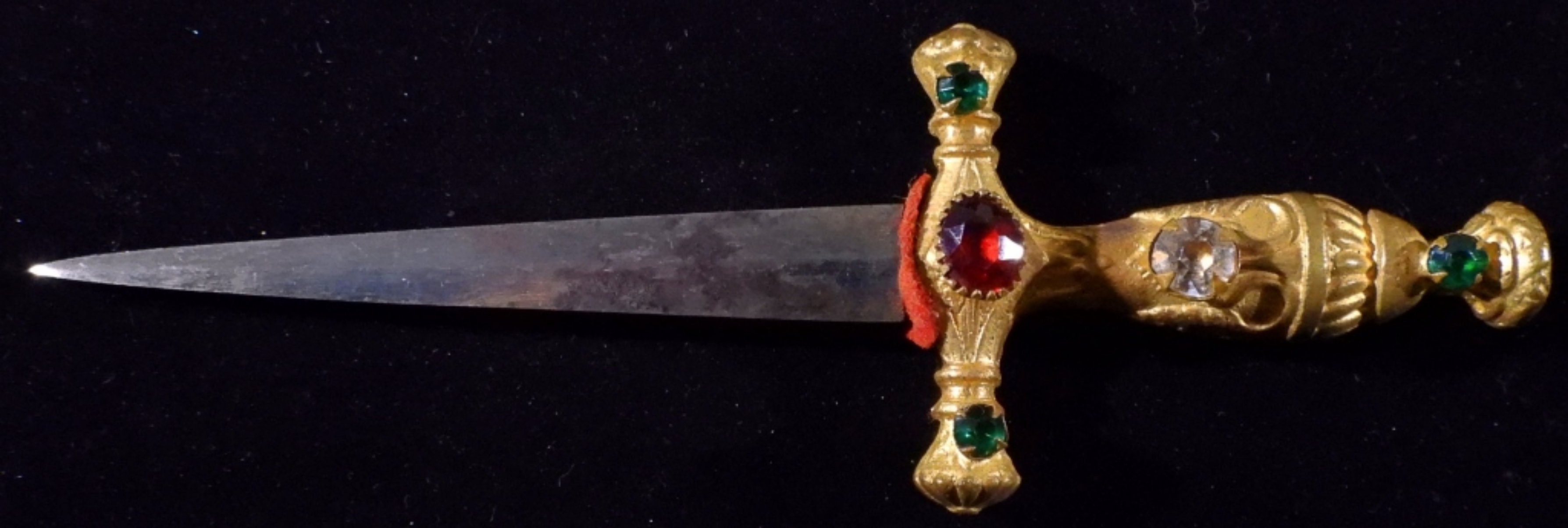 Faux gems and a gold-tone handle, 6 1/2″ total length