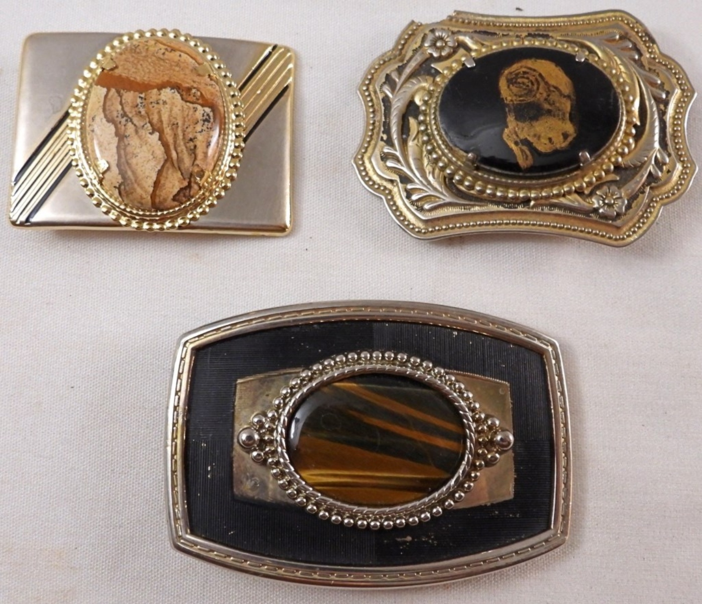Gold and silver-tones, with stone centers