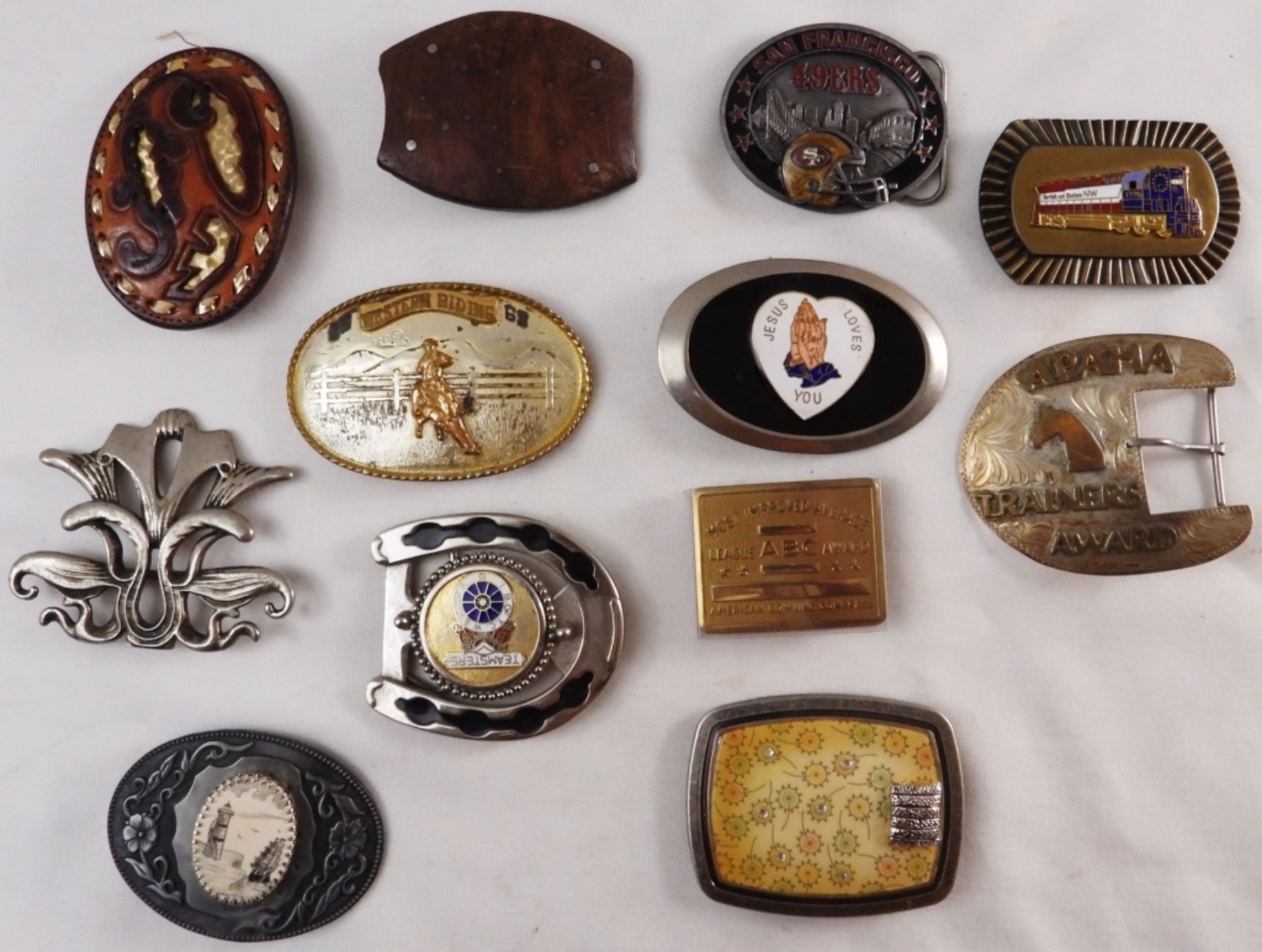 (12) various belt buckles, all sorts of styles and sizes