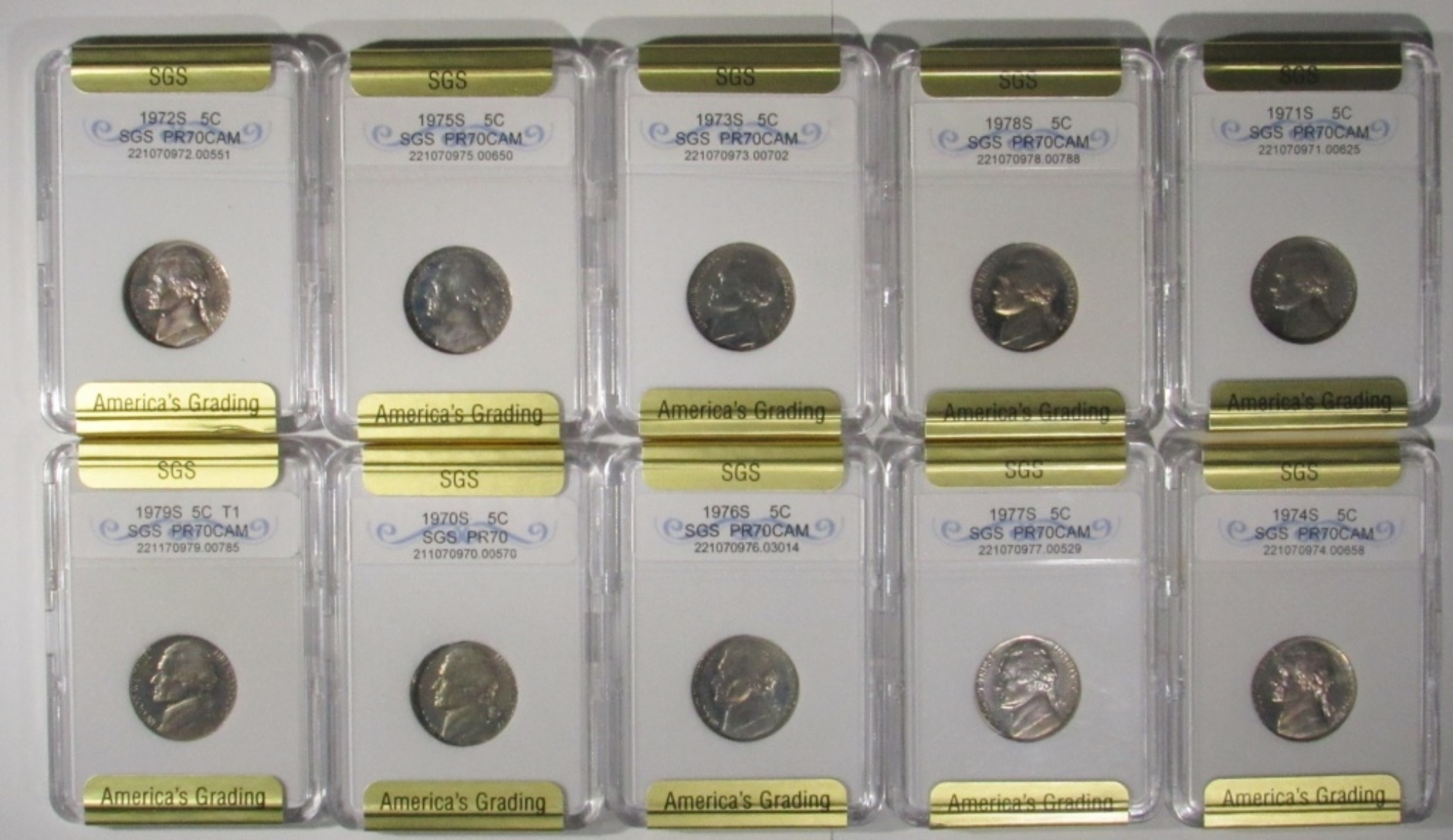 (10) Proof Jefferson Nickels in SGS