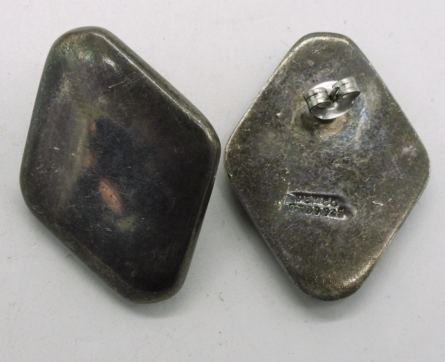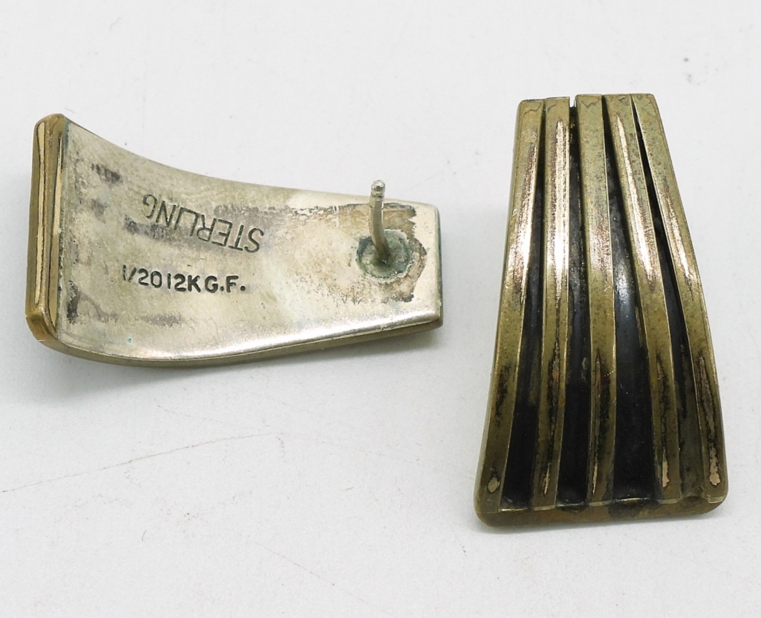 Three pair of sterling earrings, Taxco (TD-40), 2″. Gold tone (gold filled) sterling earrings, 1″. Third pair is 1.5″ long. (24 dwt)