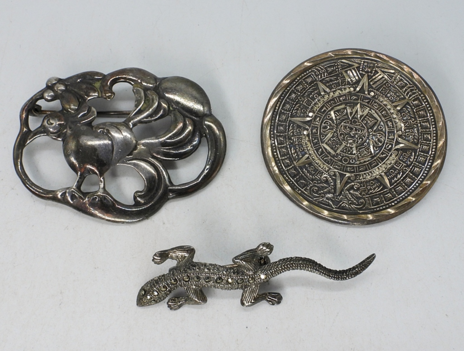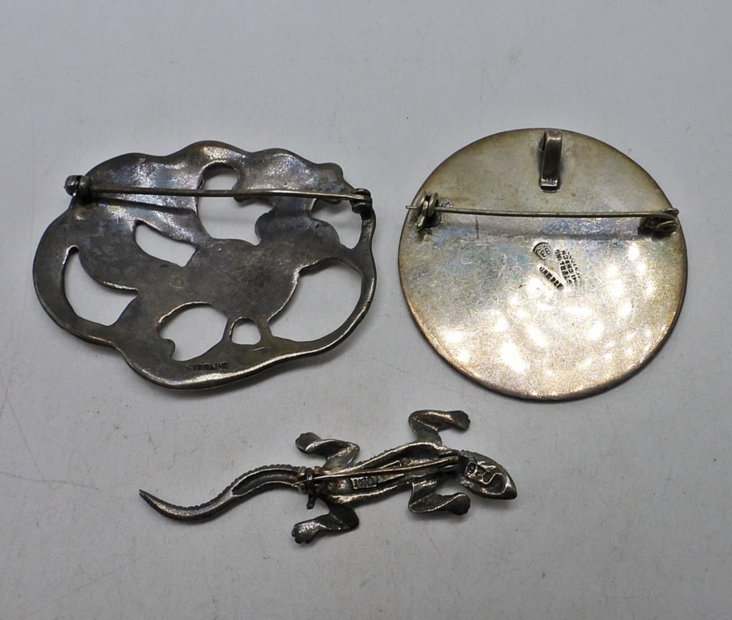 Three sterling brooches, 2″. (20.7 dwt)