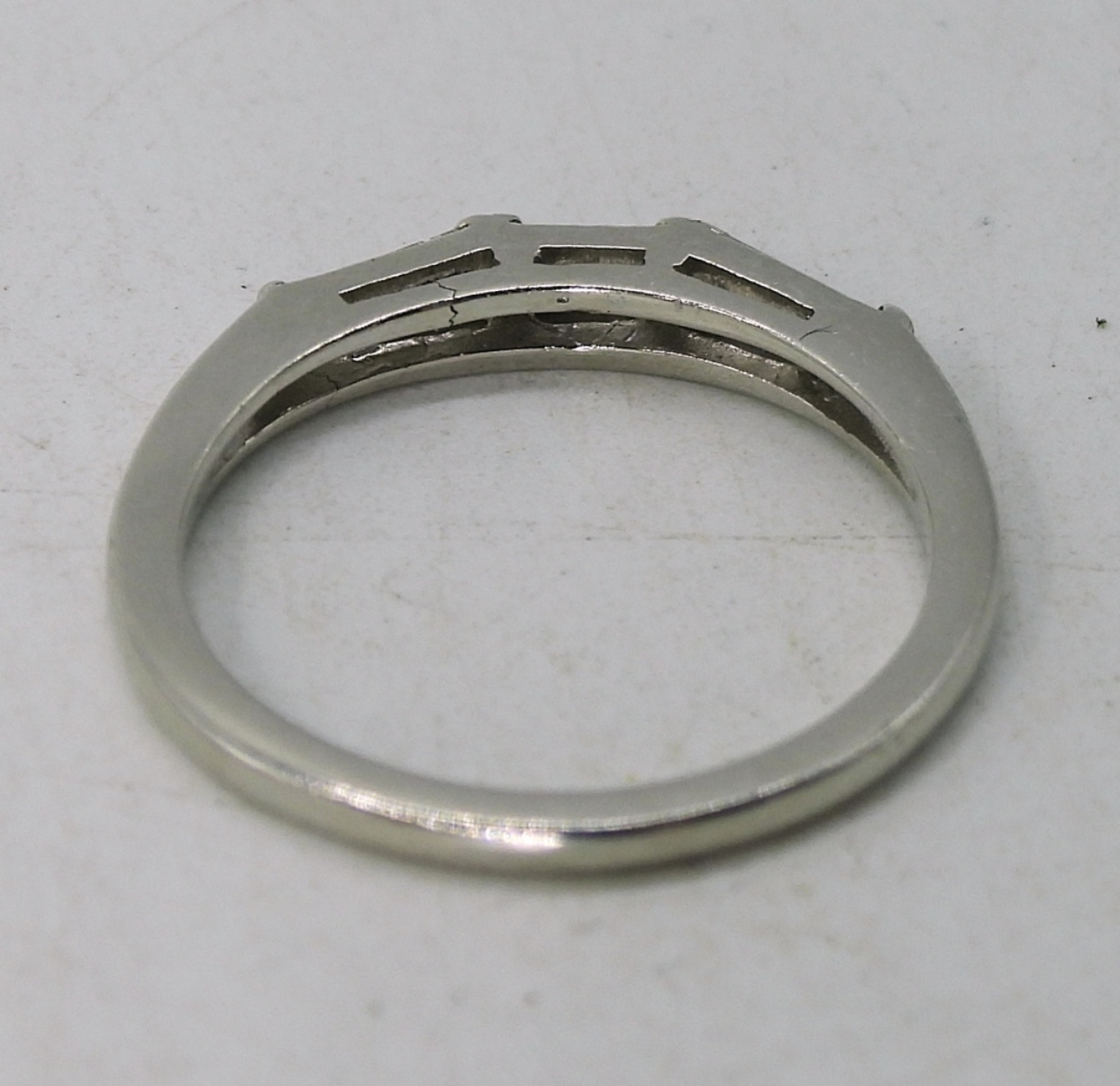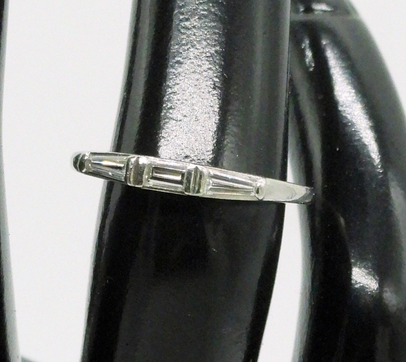 18k White Gold Ring, with baguette diamonds, size 4 3/4.