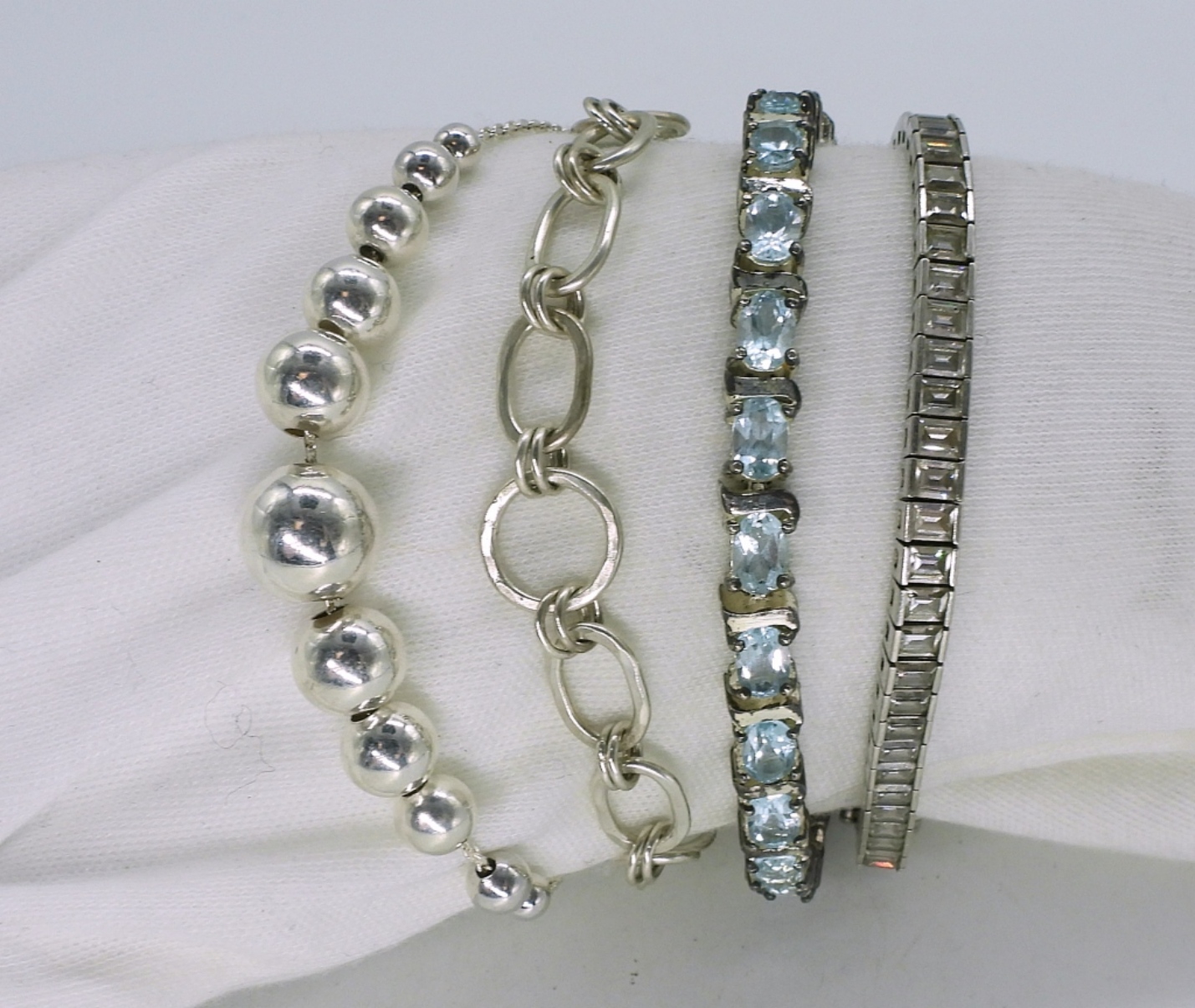 Four sterling fashion bracelets, 7-8″. (29 dwt)