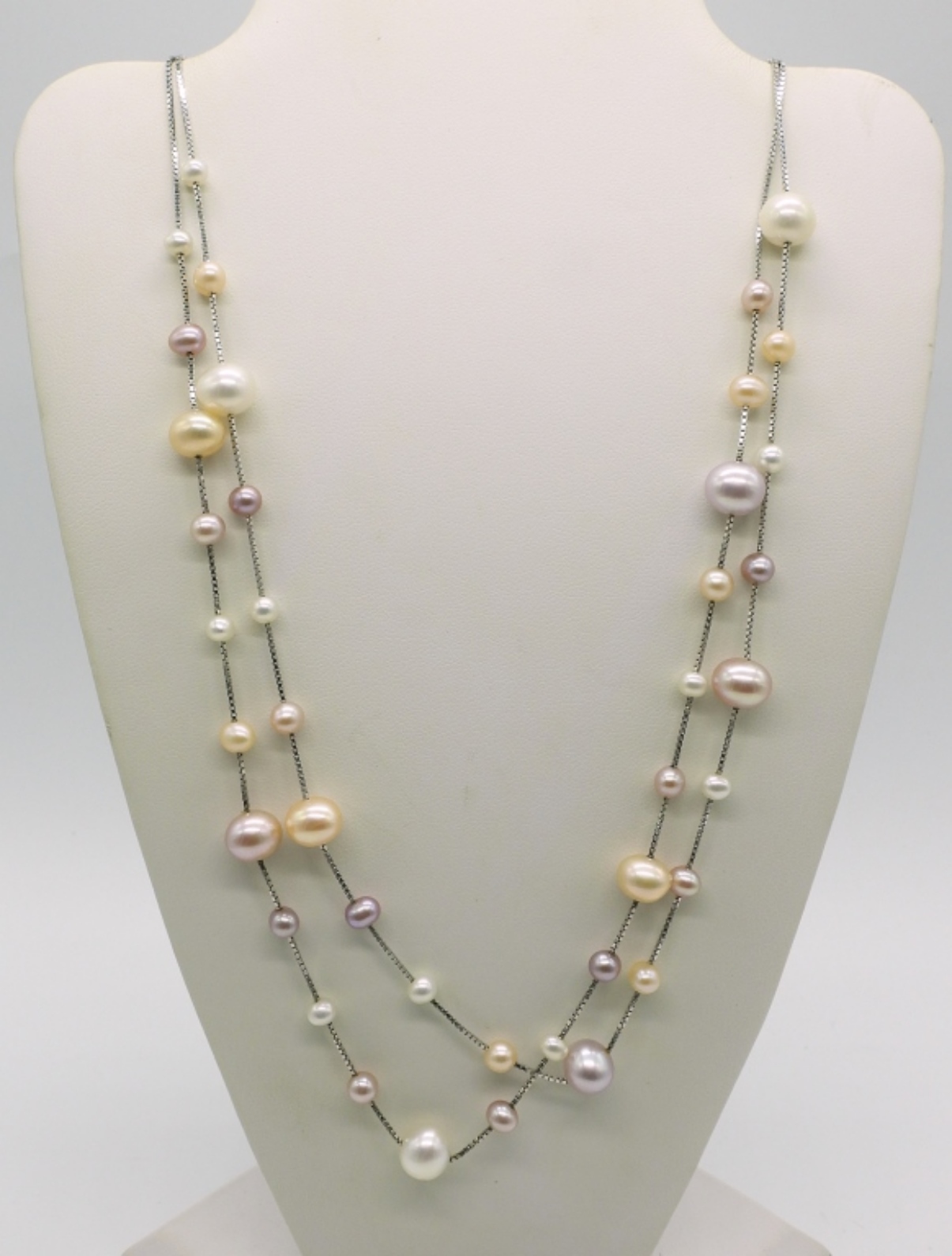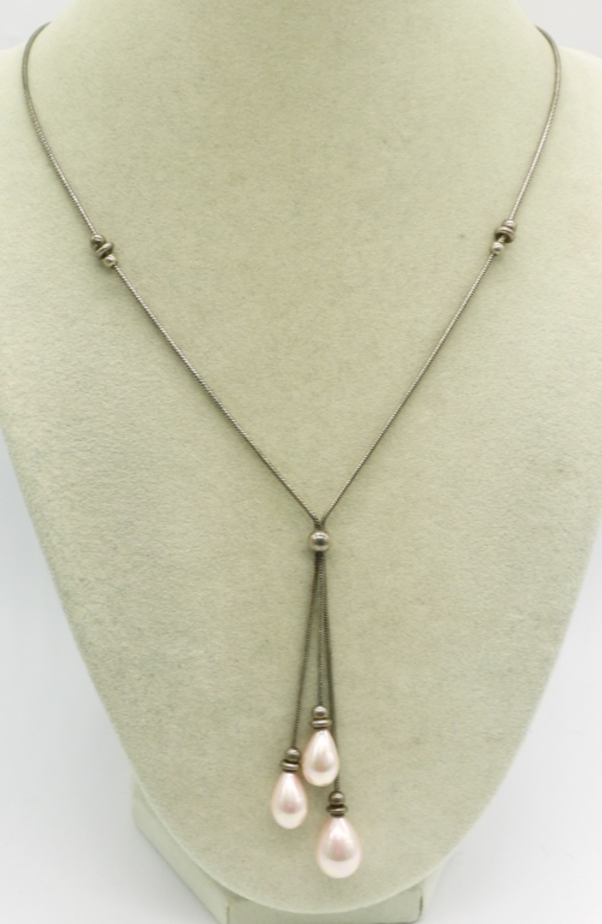 Three beautiful sterling pearl necklaces, 18″ & 20″. (15 dwt)