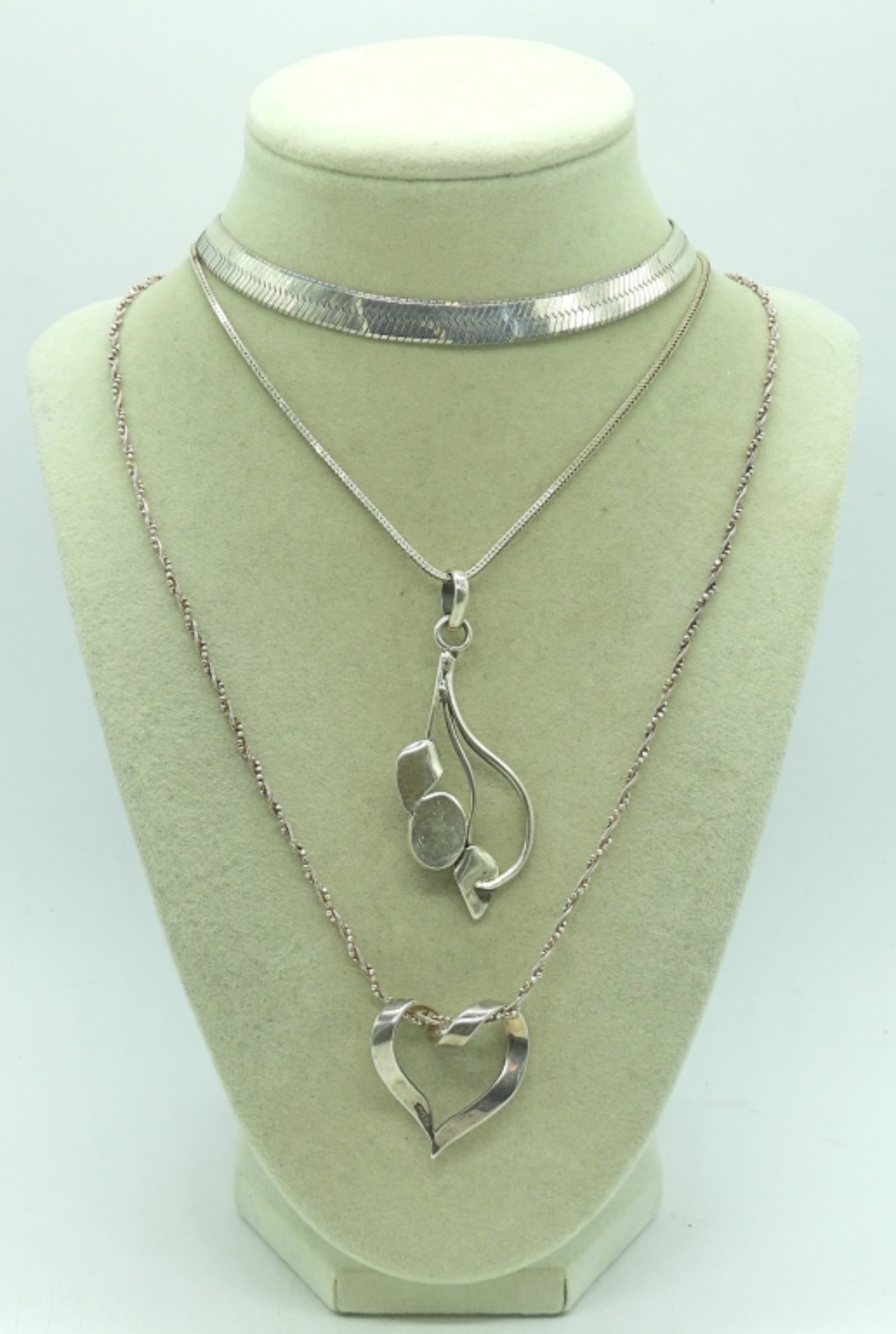 Three sterling pendant necklaces, 16″, 18″, 24″. (31.8 dwt)