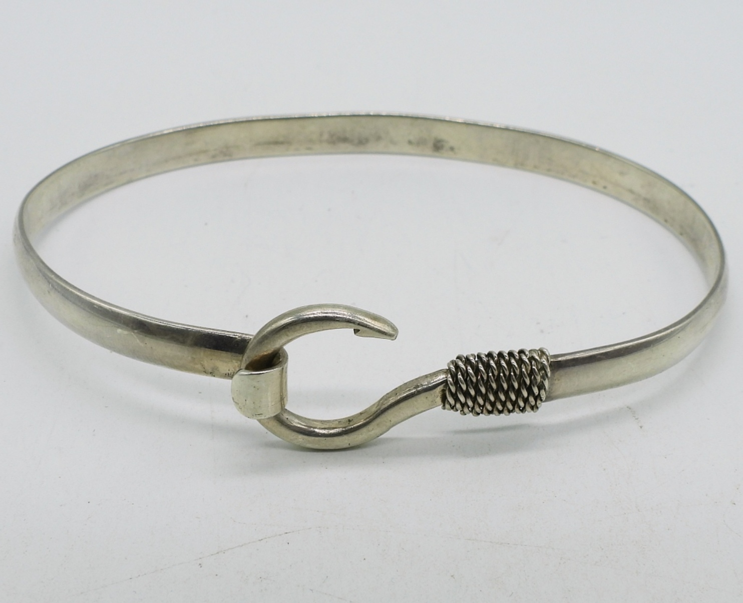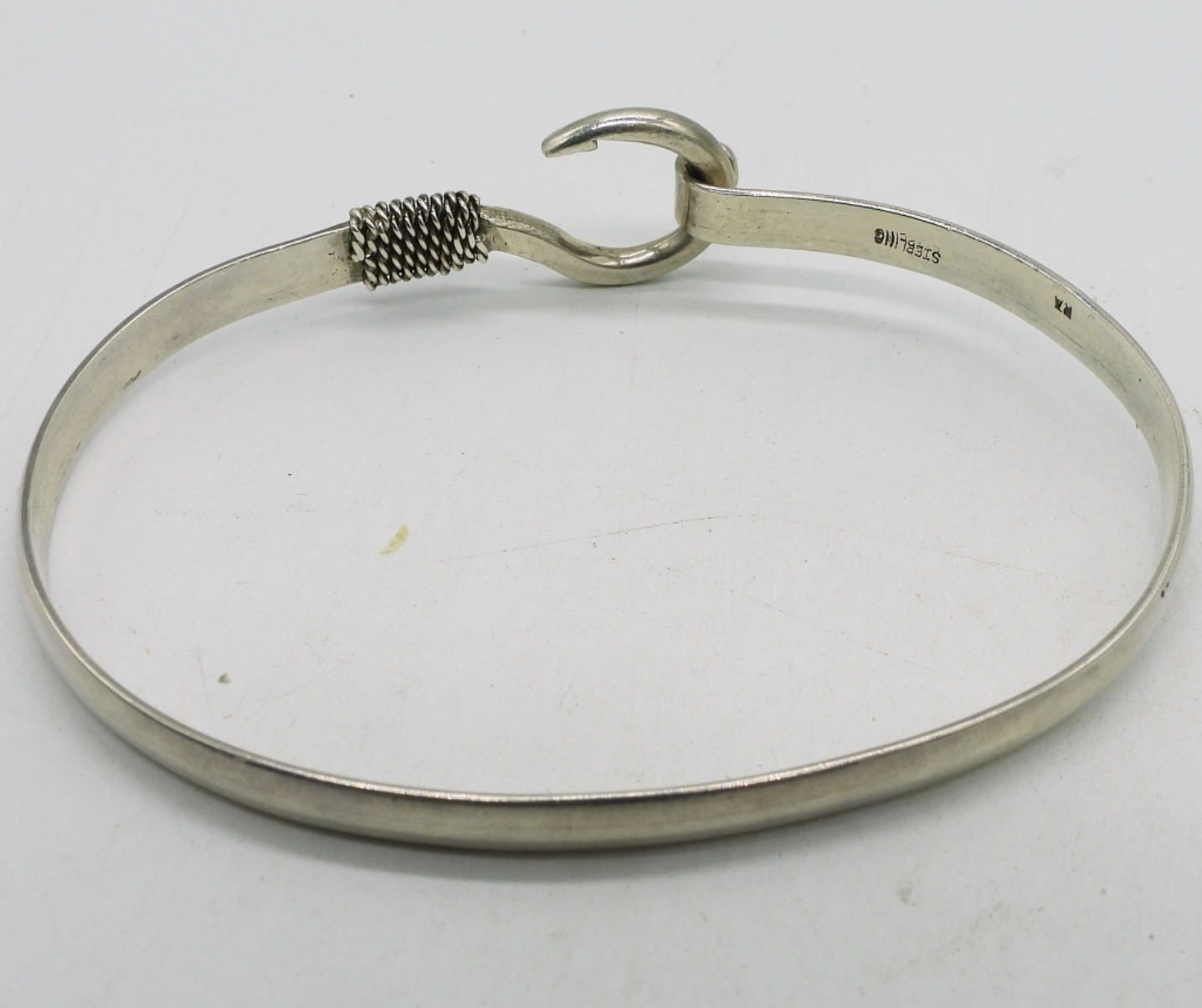 Sterling fishhook bangle bracelet, 8″ around. (11.7 dwt)