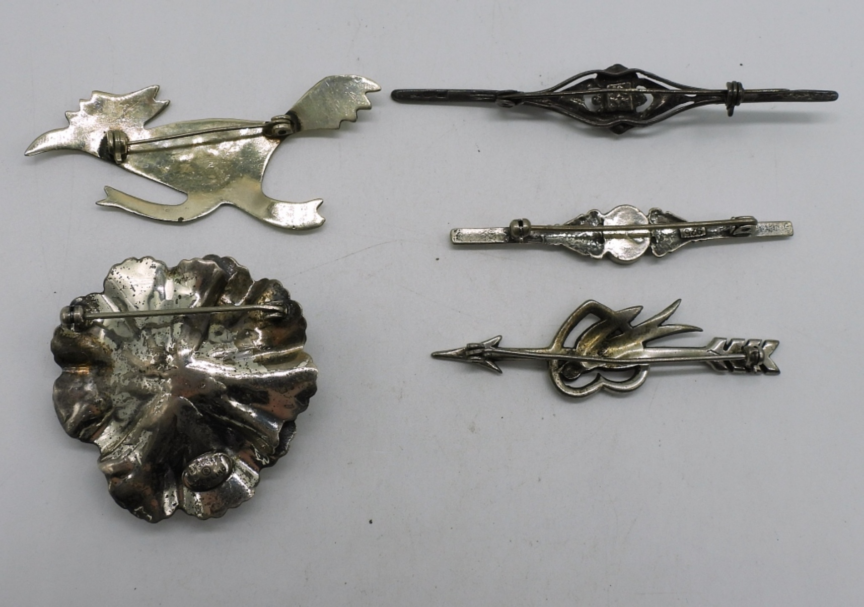 Five vintage sterling ladies brooches. 1.5-3″. (20.4 dwt)