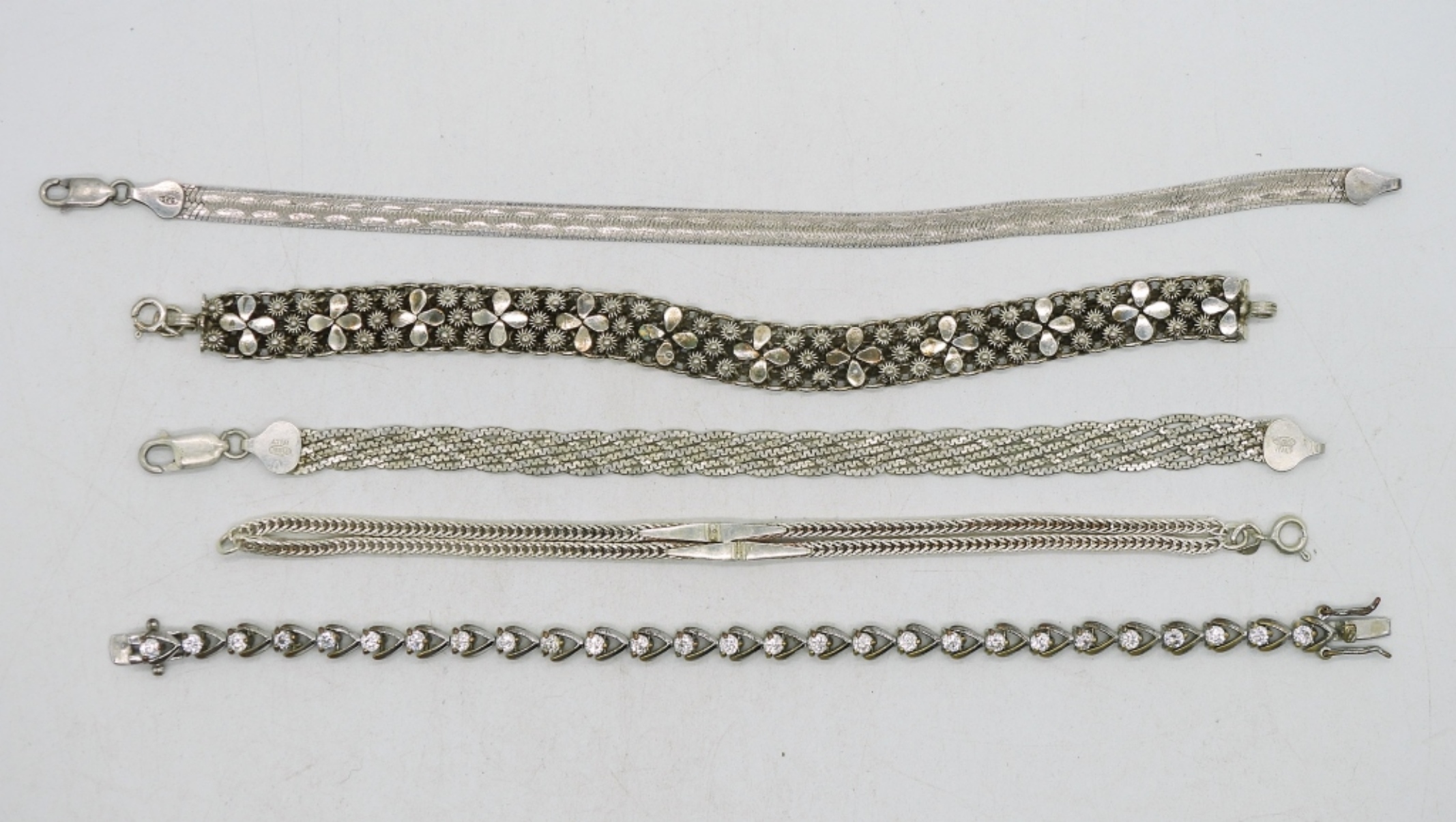 Five Sterling Bracelets. 6.5″ – 8″. (34 dwt)
