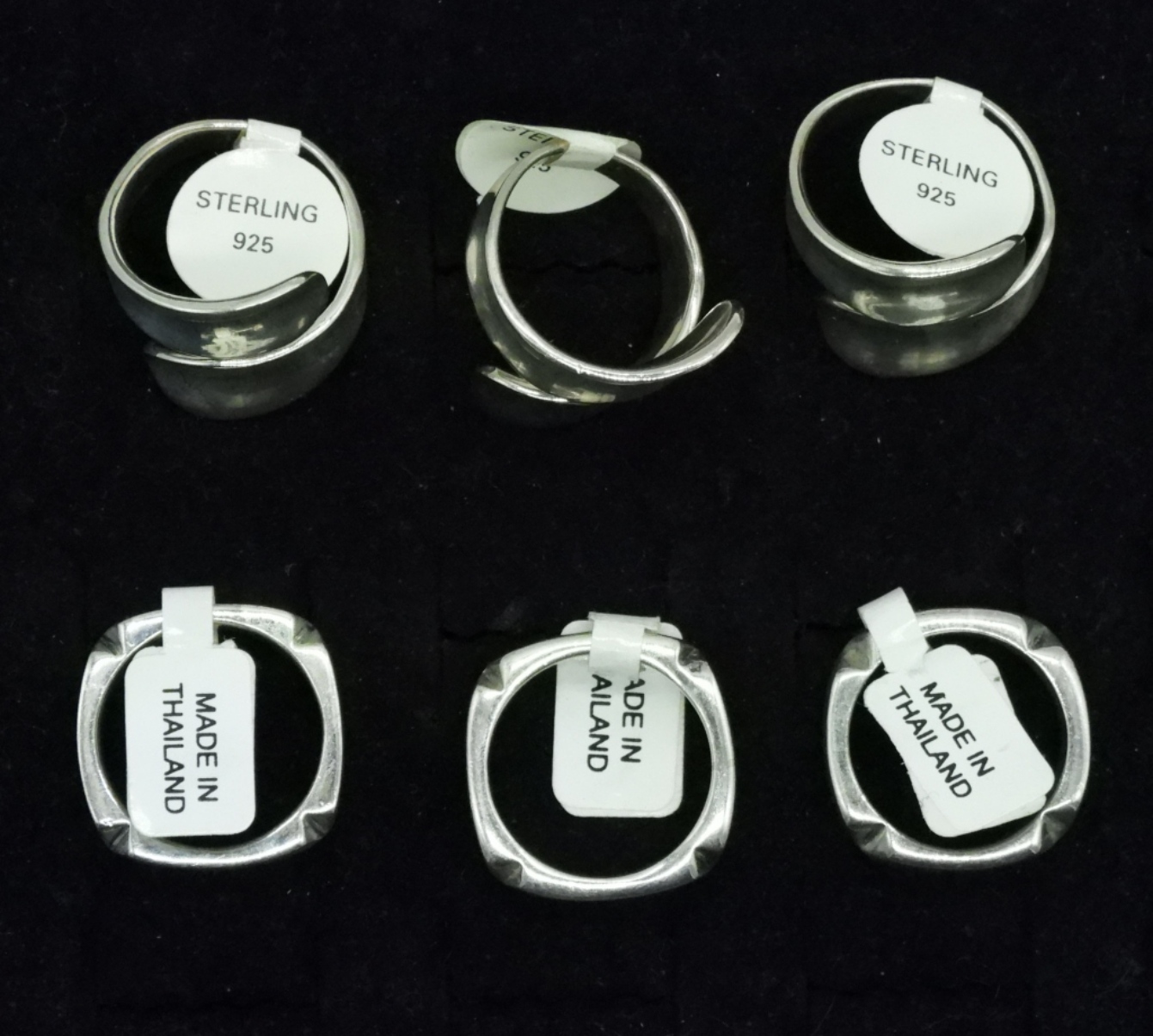 Six brand new sterling rings with tags. Sizes 6 & 7. (26 dwt)
