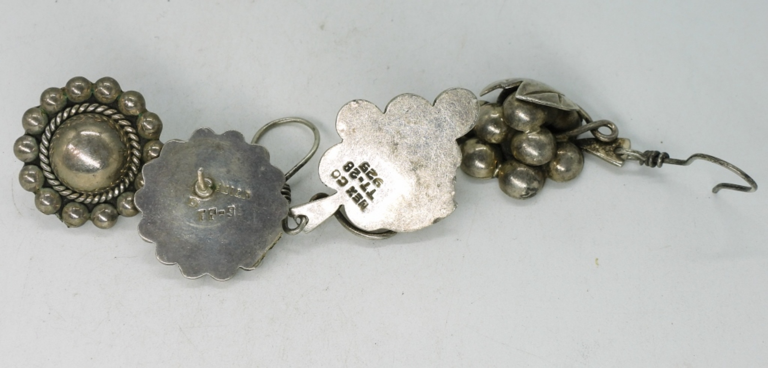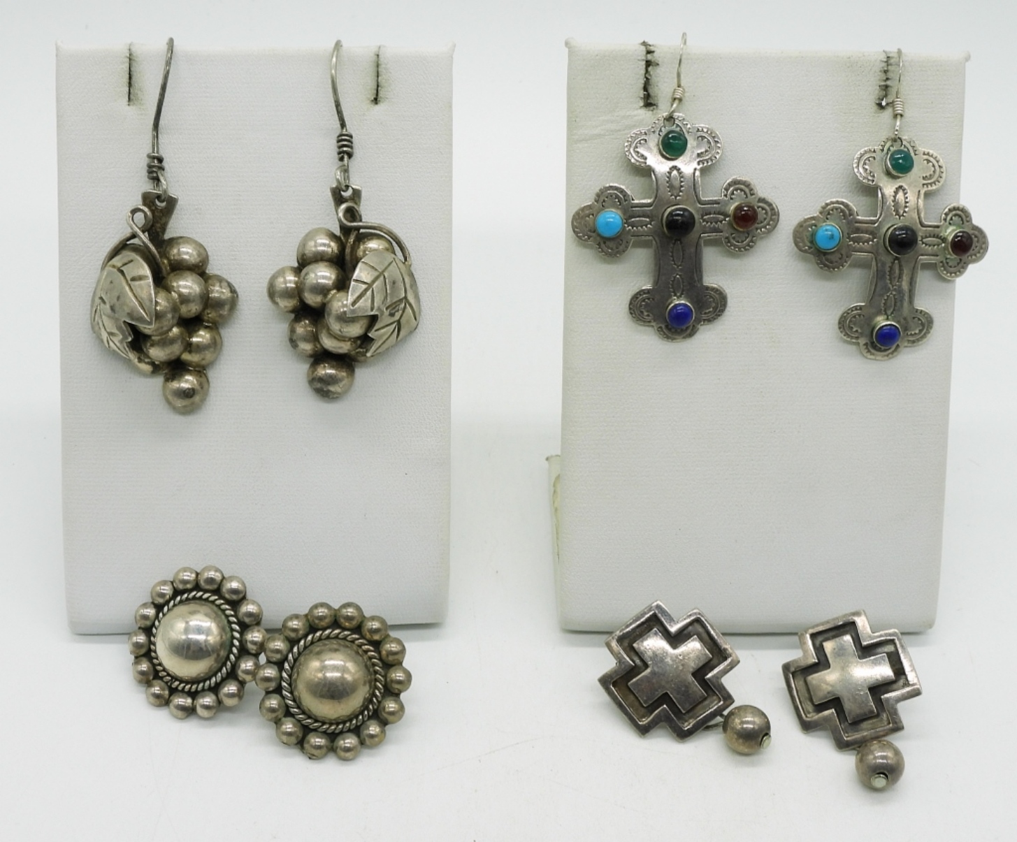 Two pair of Taxco sterling pierced earrings. Two pair of sterling cross pierced earrings. (25.7 dwt)