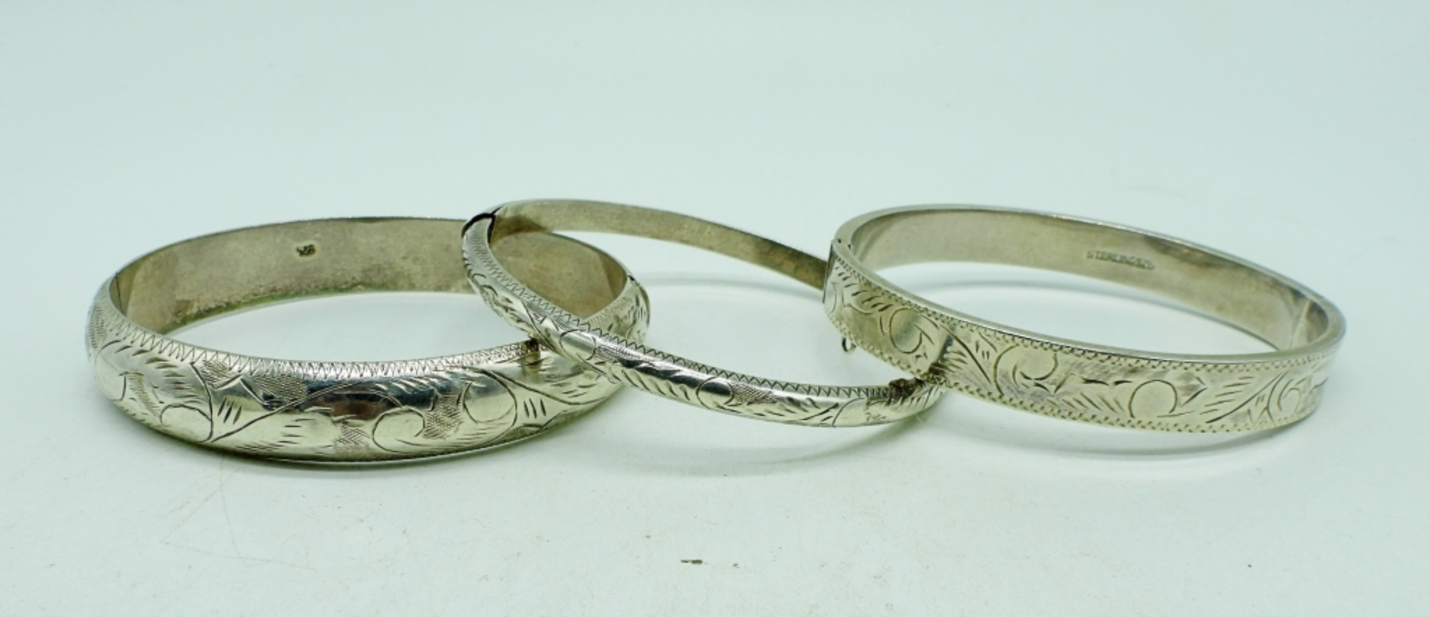 Three sterling hinged bangle bracelets, 7-8″. (23.3 dwt)