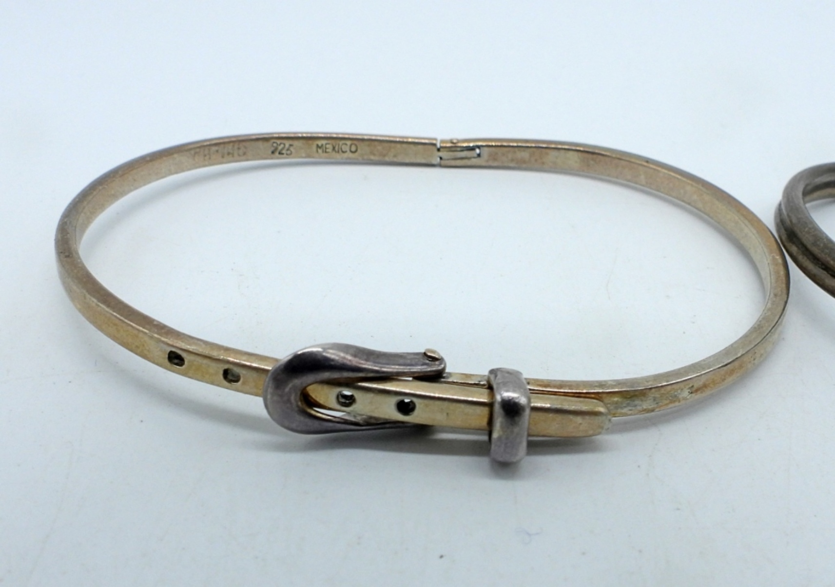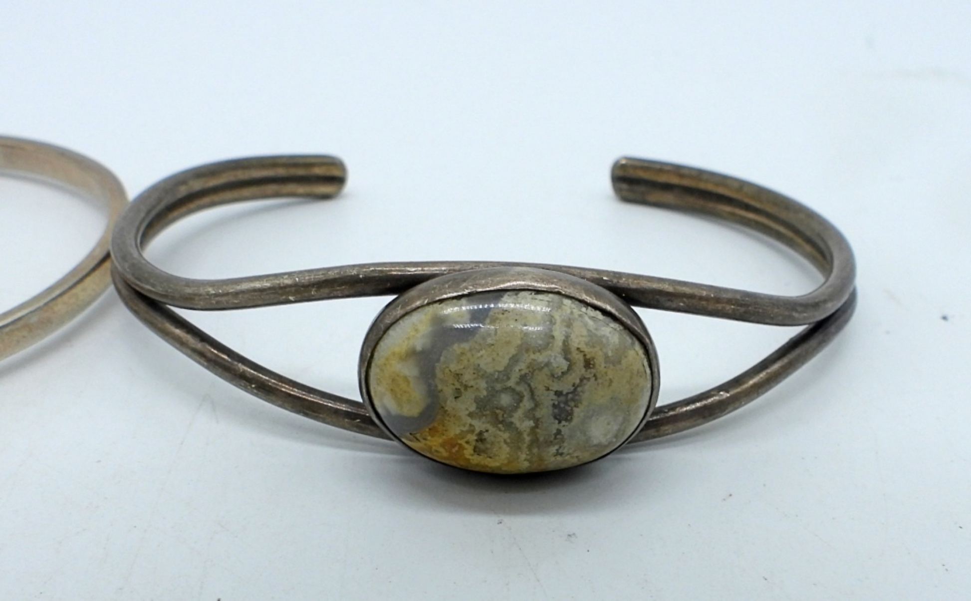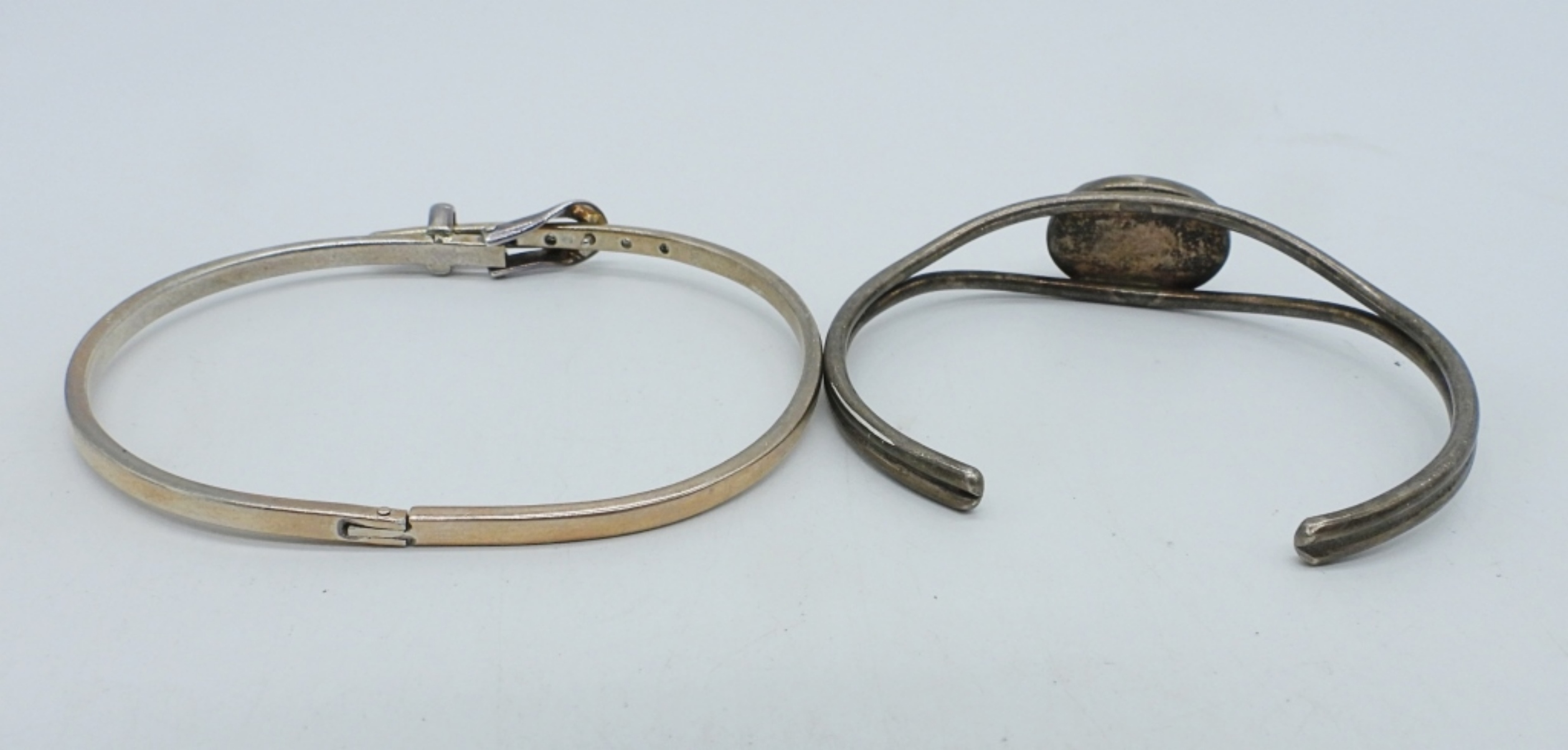 Two sterling bracelets, Taxco belt bracelet “TH-146” ? Hard to read. Sterling gemstone bracelet. (14.8 DWT)