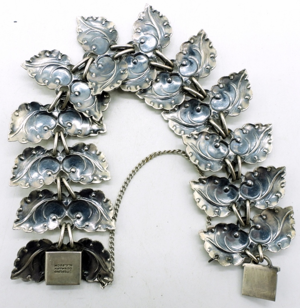 Sterling, Denmark Leaf Bracelet with safety chain, 7″. (24.7 dwt)