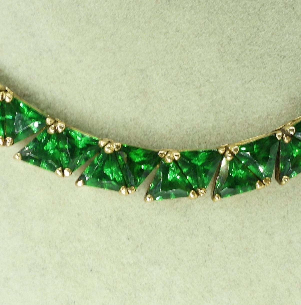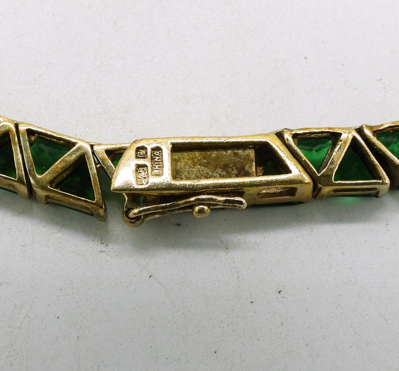 Beautiful green gemstone, sterling gold tone necklace, 18″. (31.4 dwt)