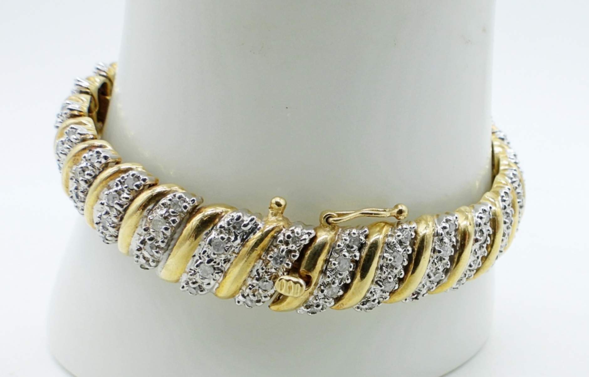 14K yellow gold, diamond, and moissanite bracelet. 7″. (18.7 DWT)