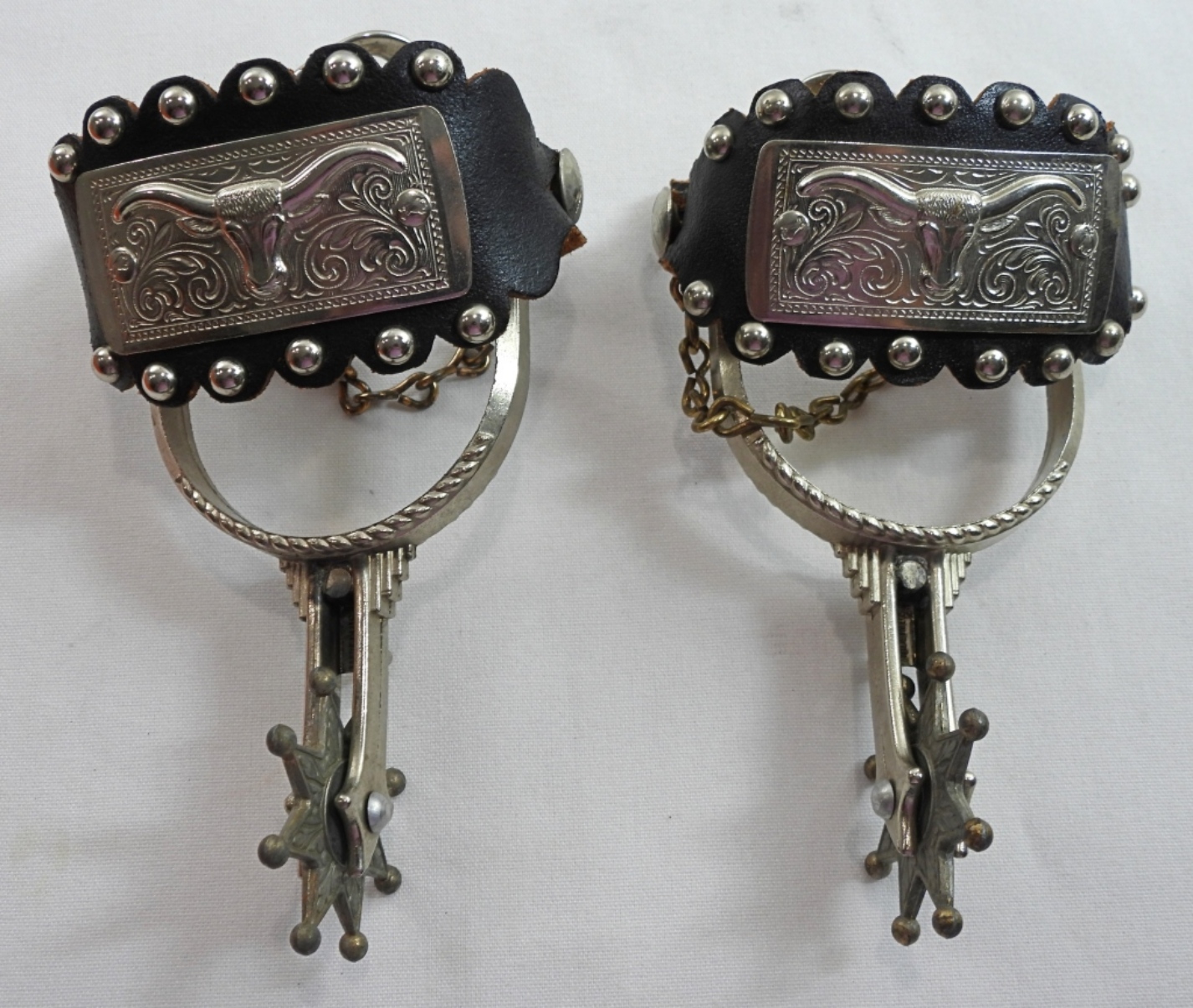 Still in the original box. One spur is more worn than the other. In fair to good condition, pre owned.
