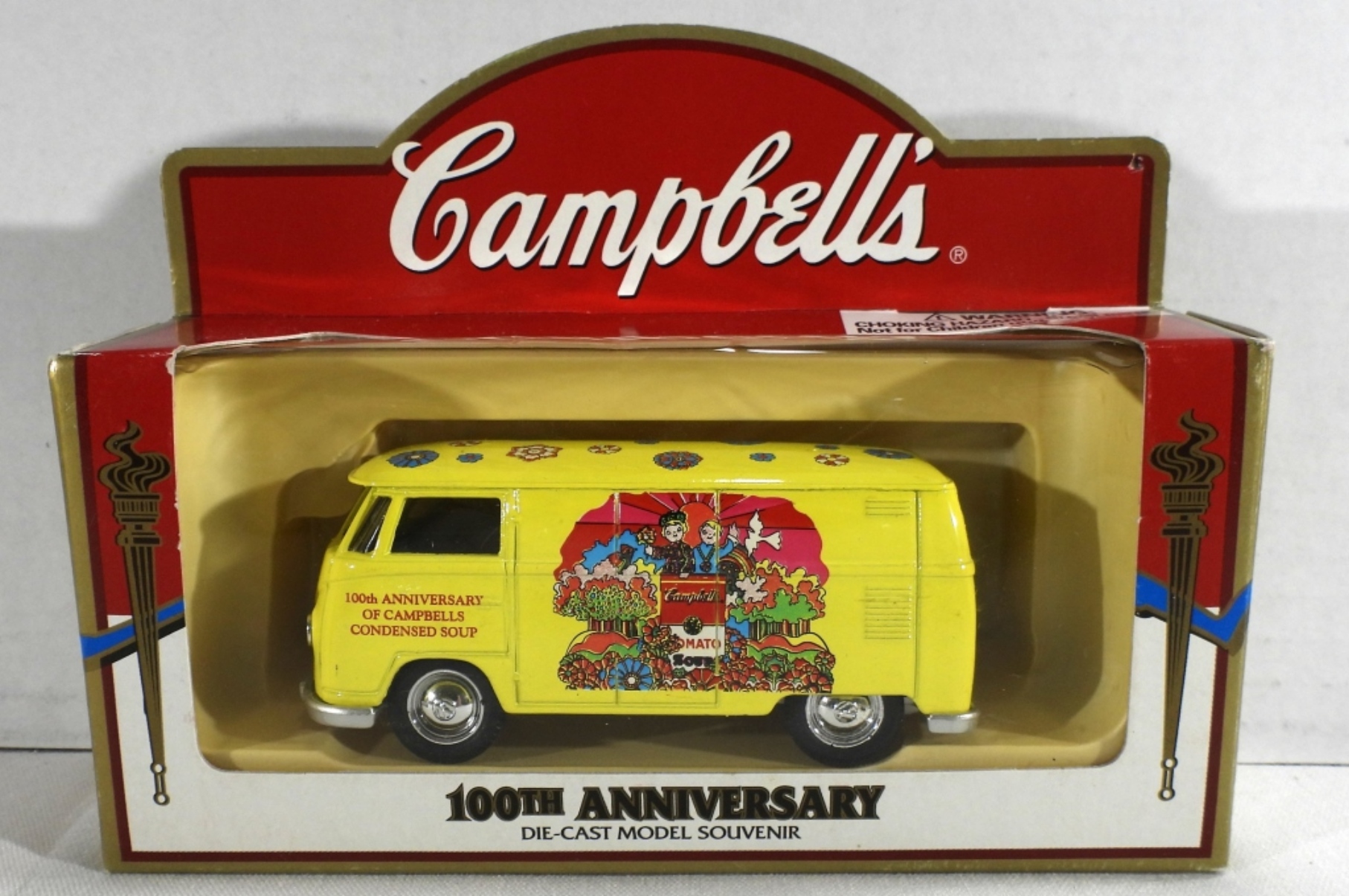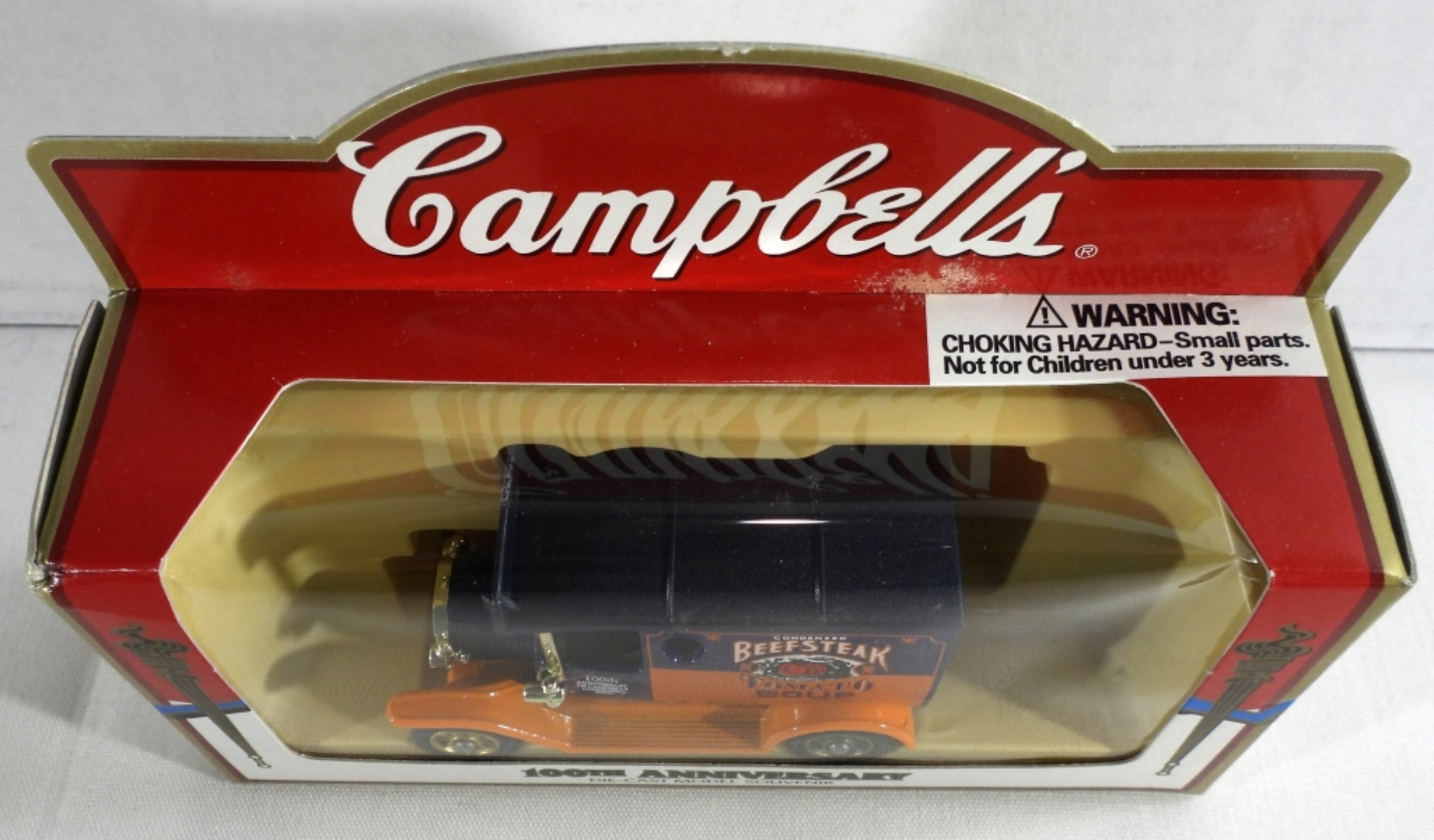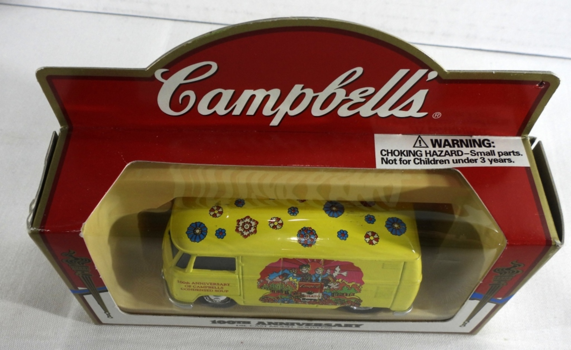 All new, still in original boxes. Campbell Soup CO. Tomato, Campbell’s condensed soup hippy van, and old truck. Also, a Beefsteak Tomato Soup truck