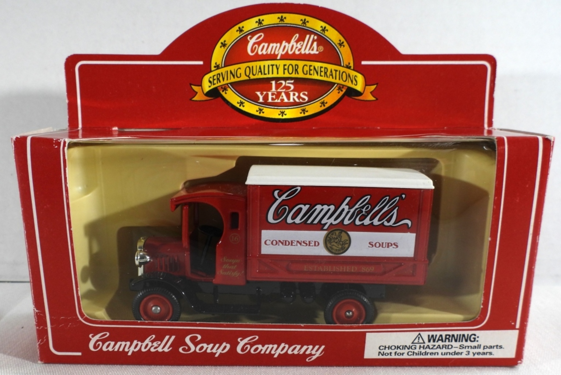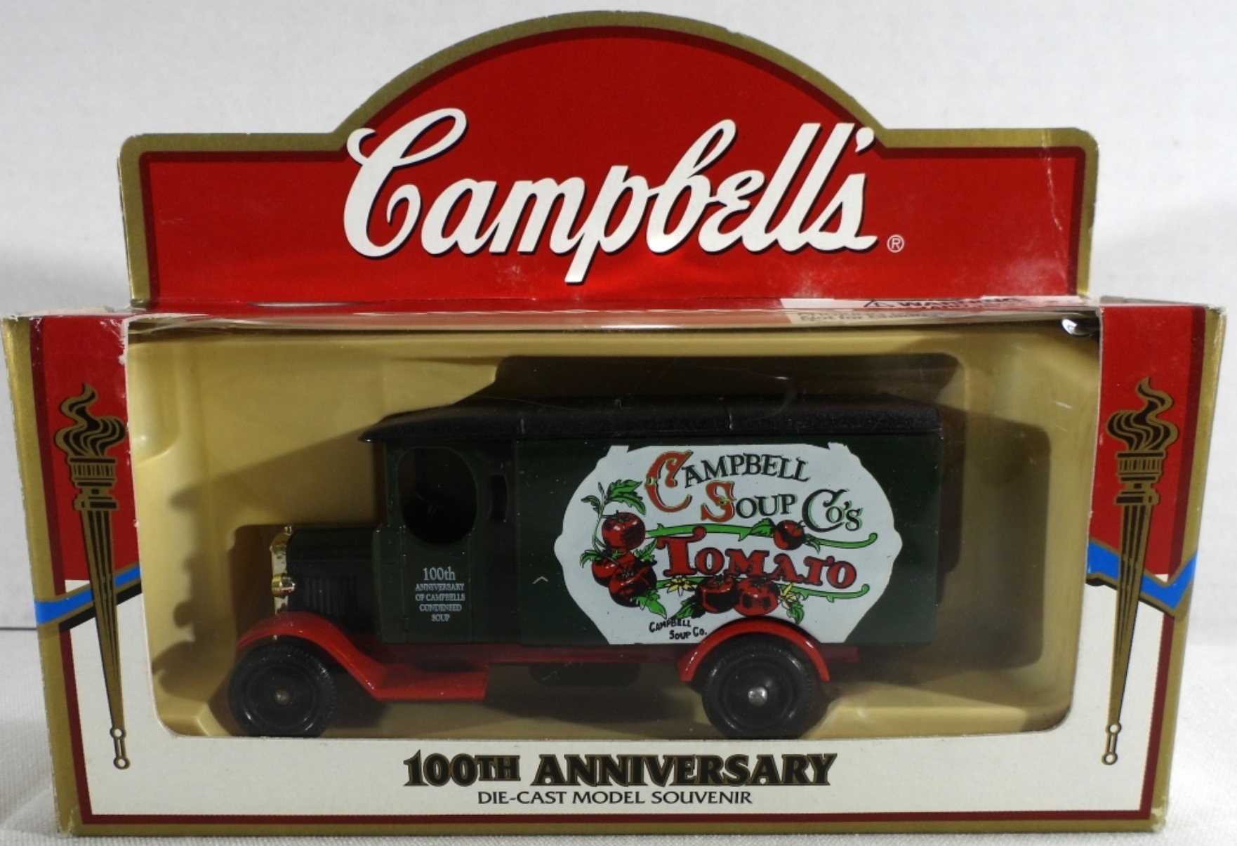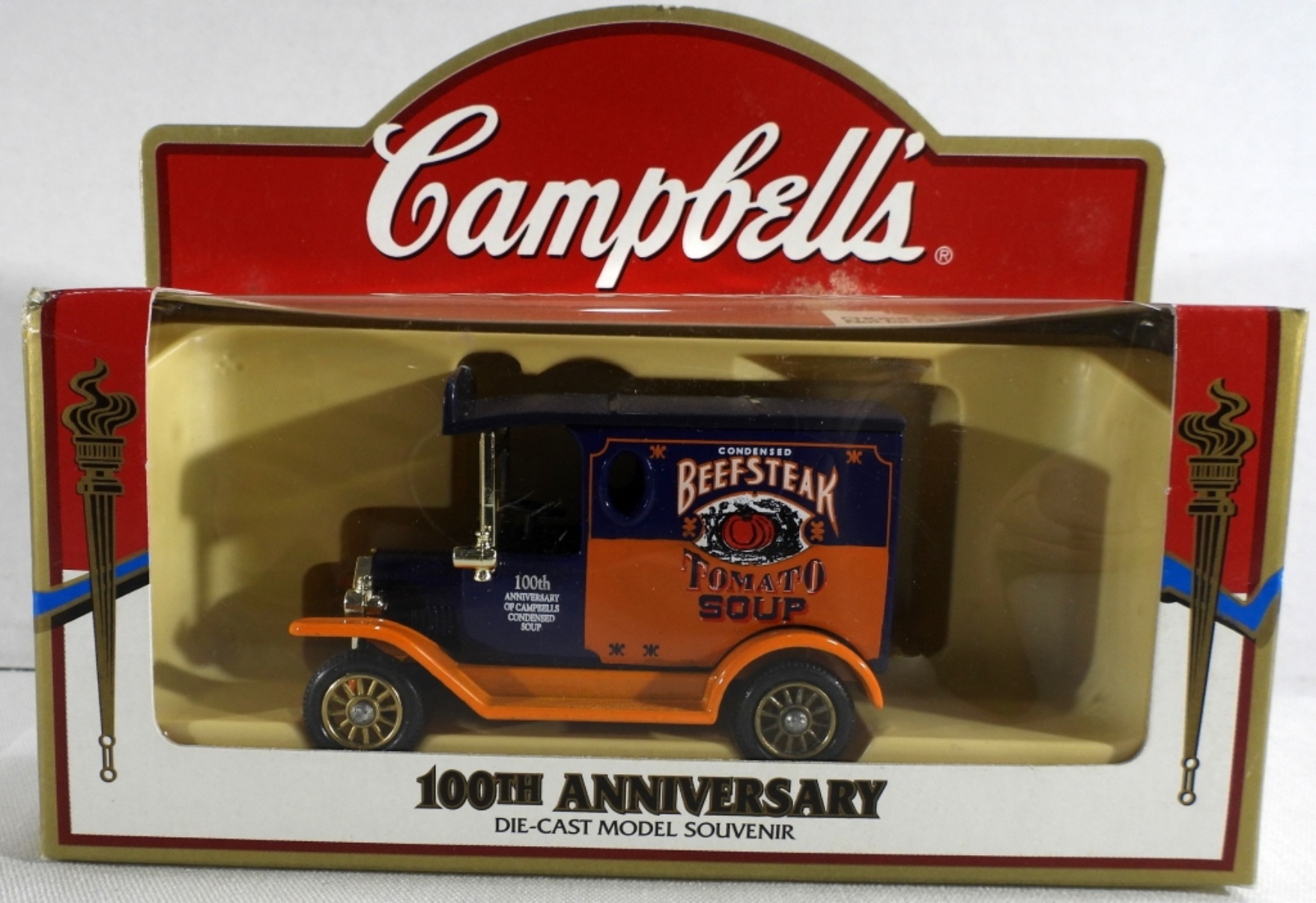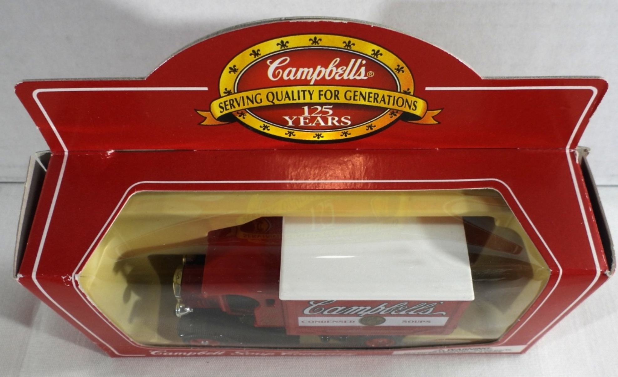 All new, still in original boxes. Campbell Soup CO. Tomato, Campbell’s condensed soup hippy van, and old truck. Also, a Beefsteak Tomato Soup truck
