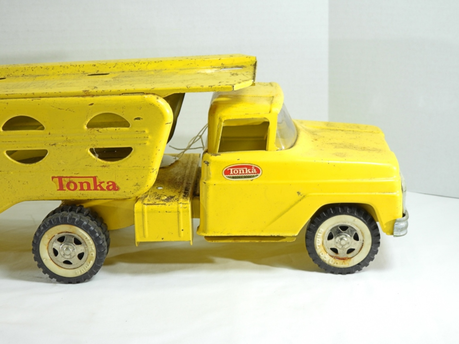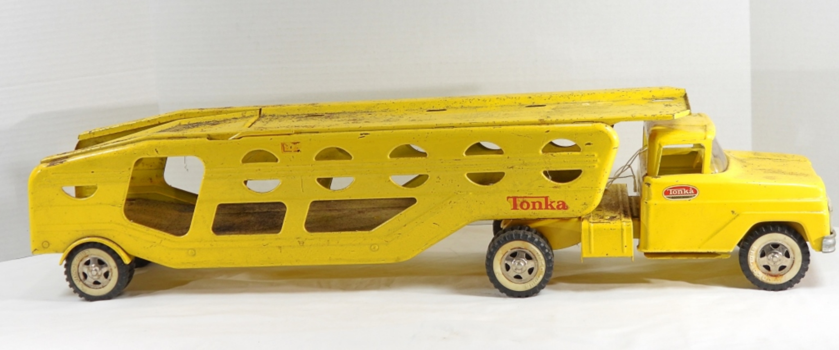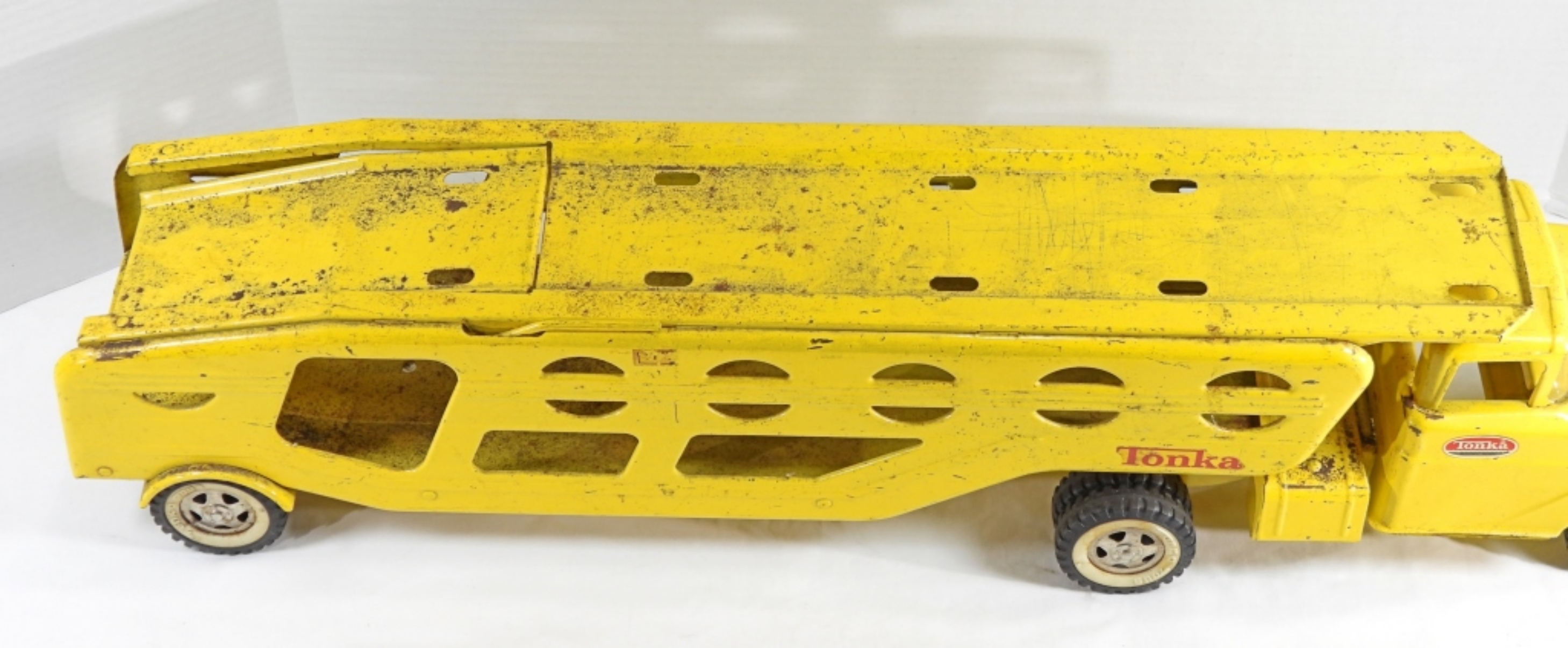 Vintage pressed steel Tonka truck car carrier in good condition, just a bit dirty, can be cleaned (pre-owned)